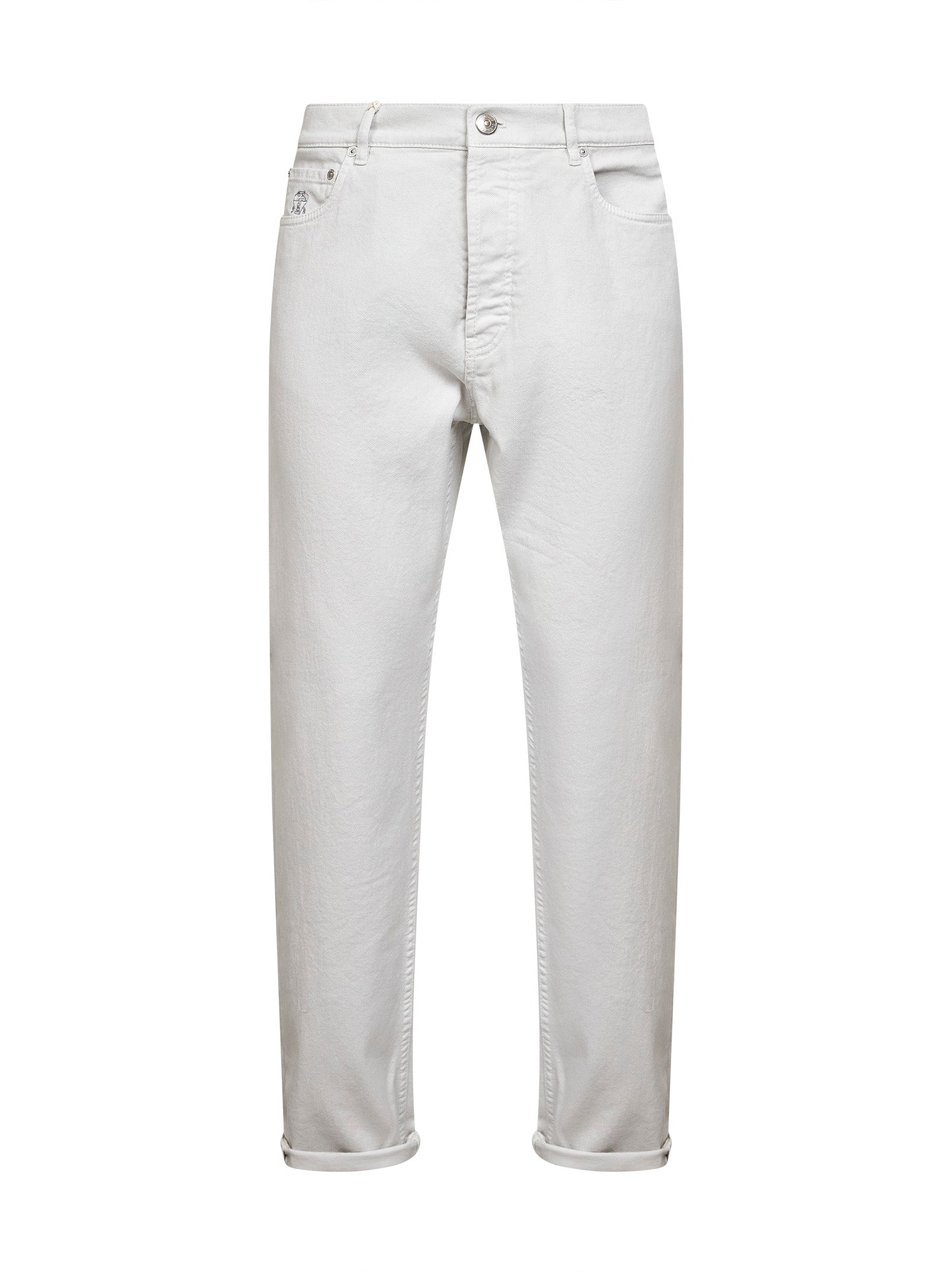Grey garment-dyed comfort denim iconic fit trousers