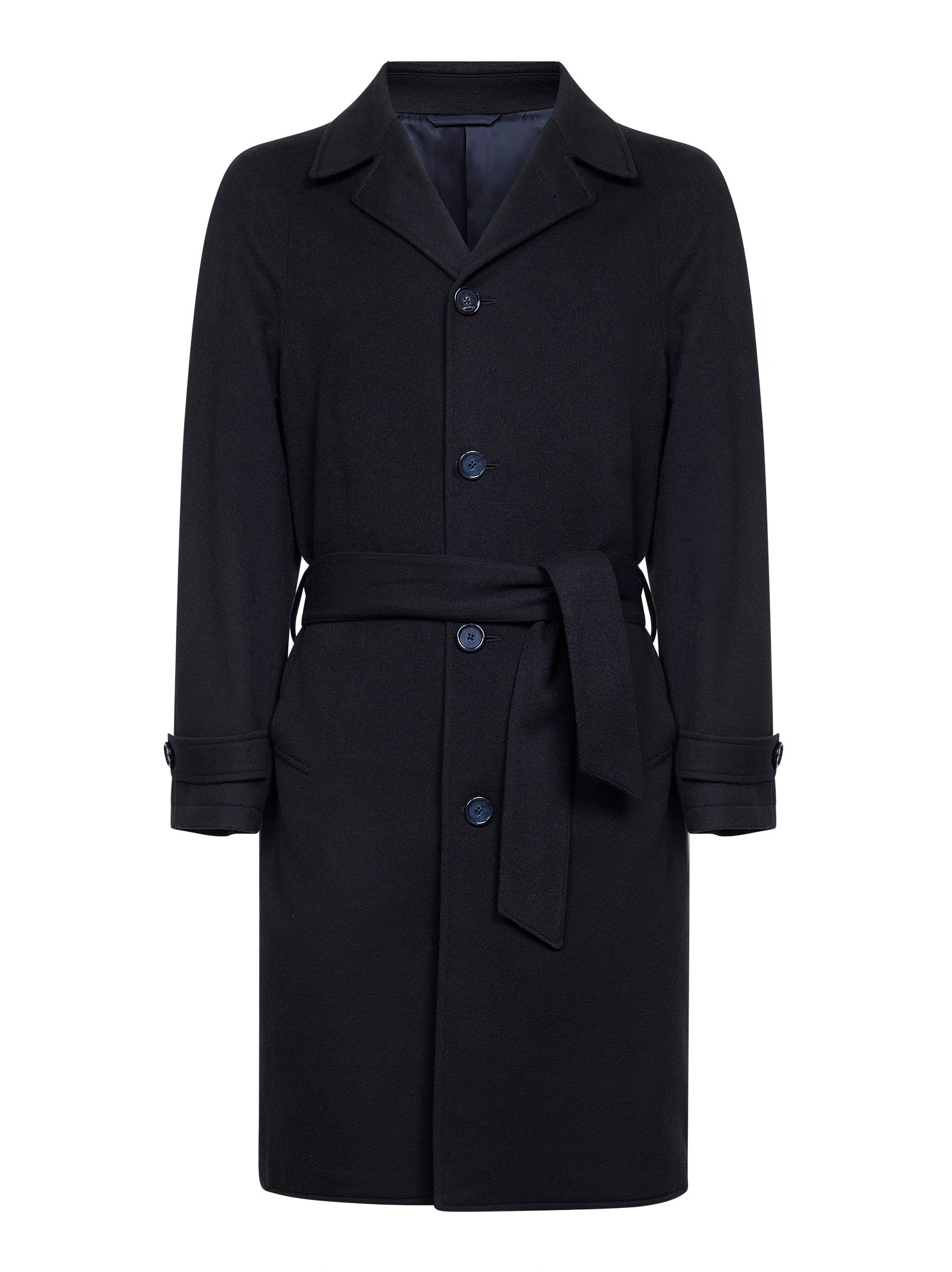 Navy blue virgin wool belted coat