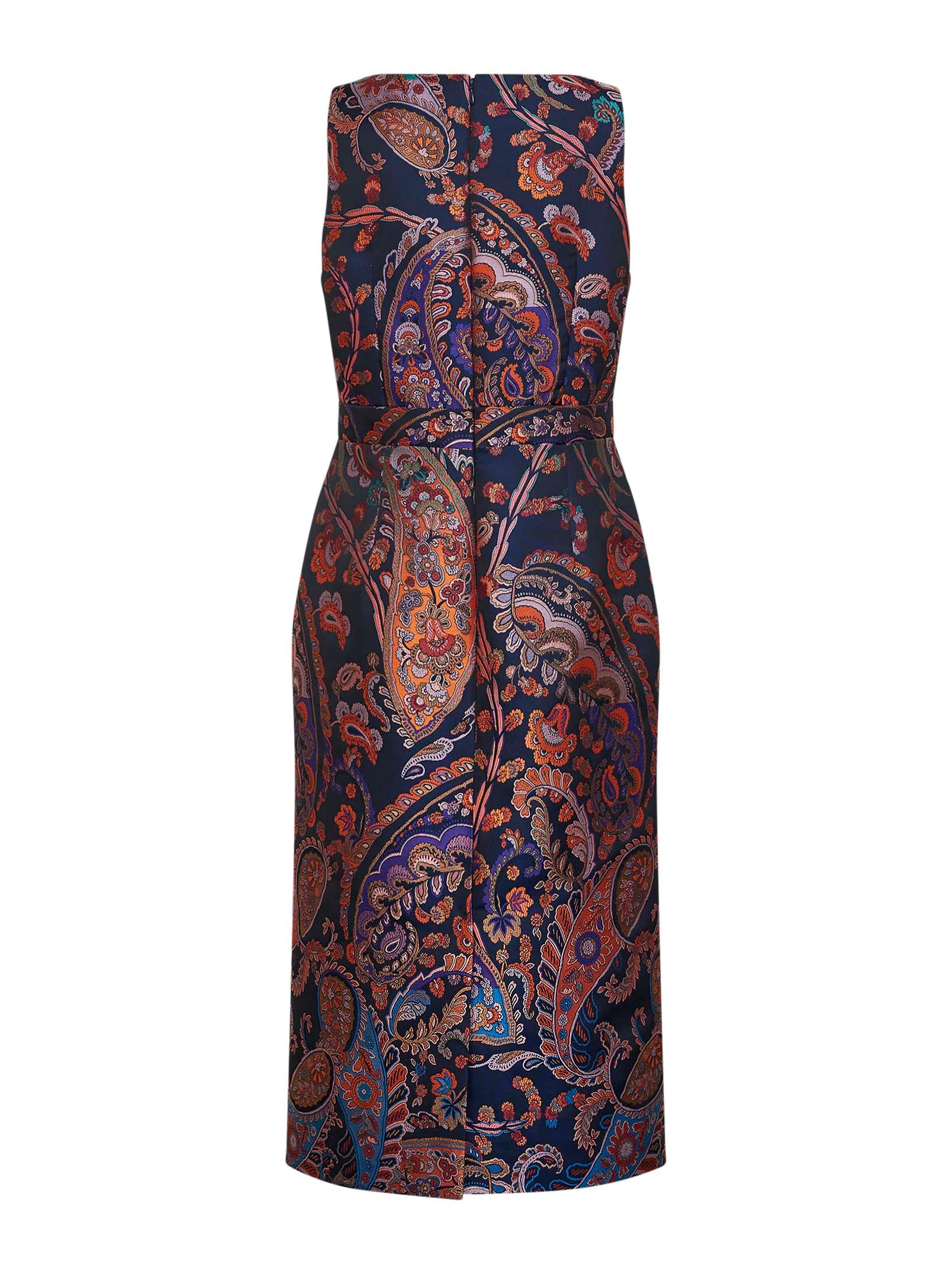 Blue floral Paisley-pattern jacquard midi sheath dress