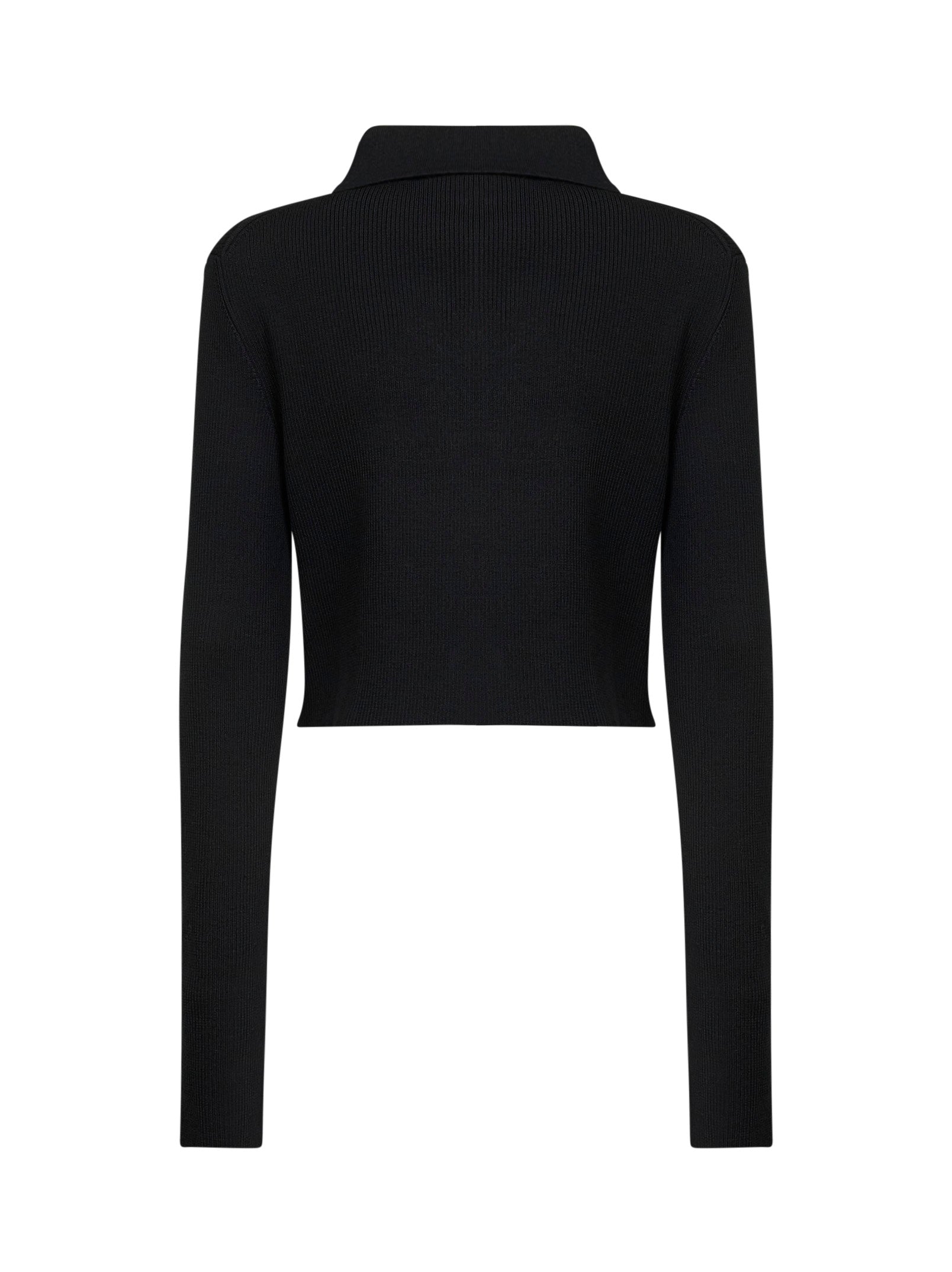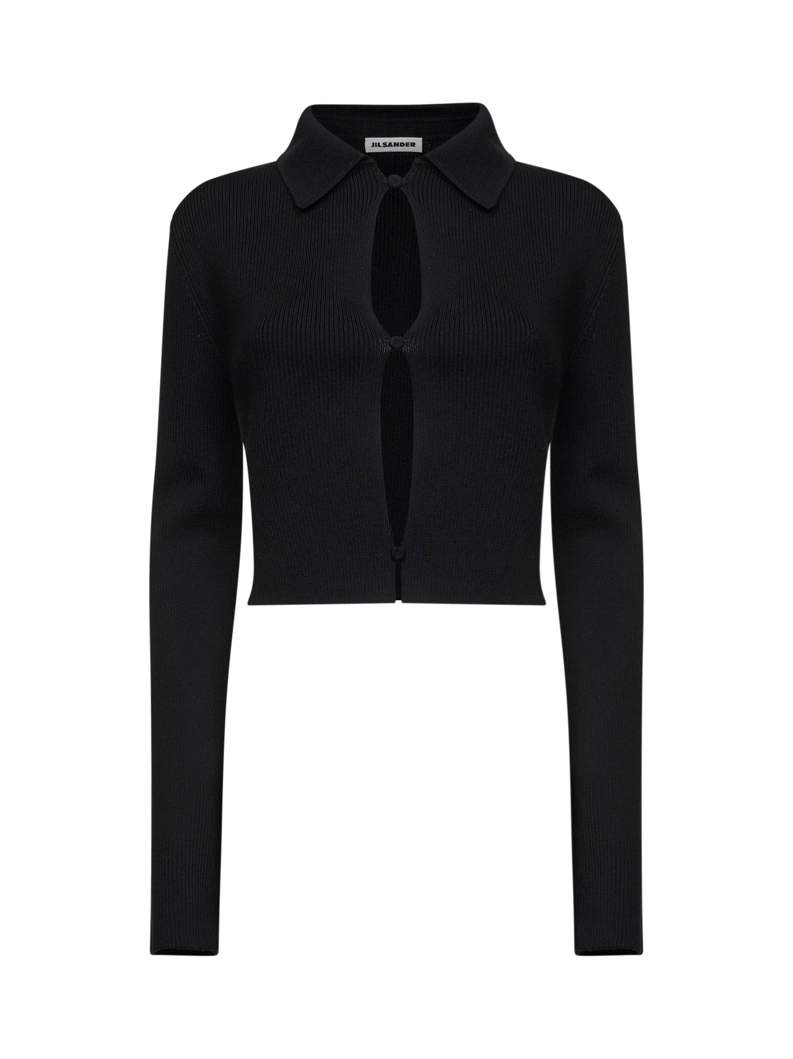 Black merino wool cropped cardigan with cut-outs