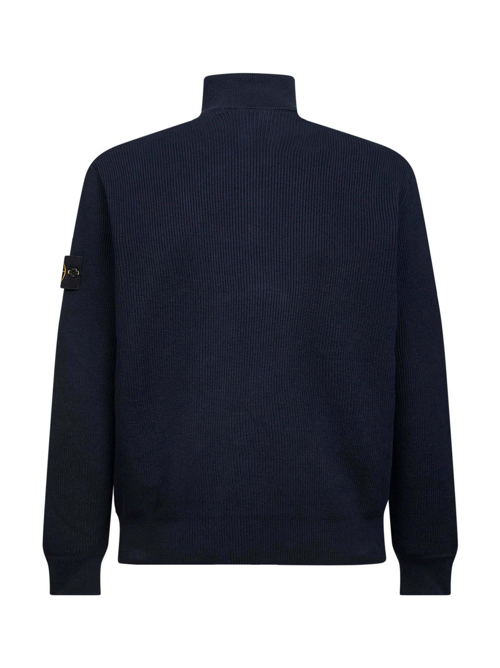 Blue ribbed cotton knit zip-up sweater