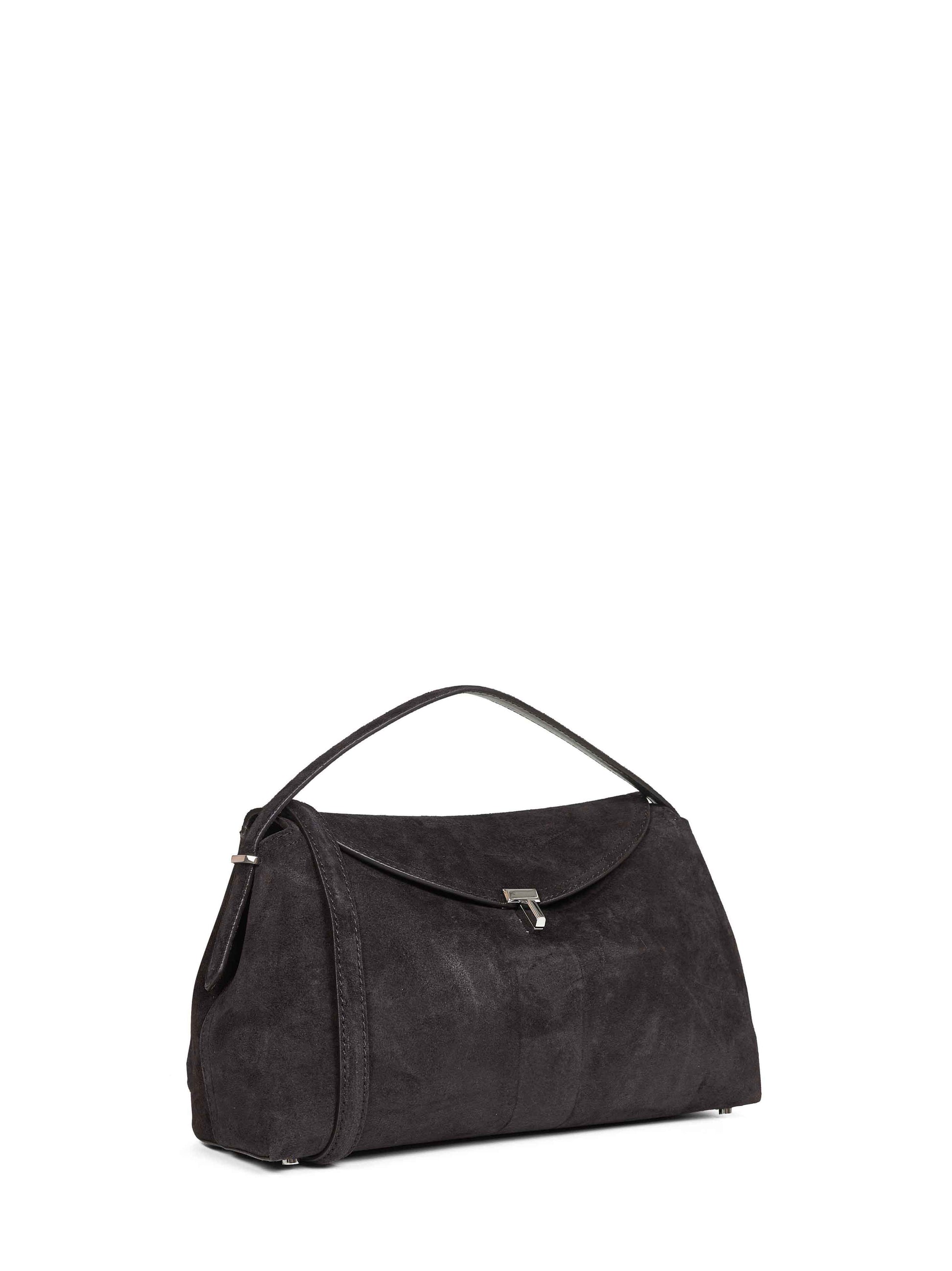 Espresso T-Lock suede top handle bag