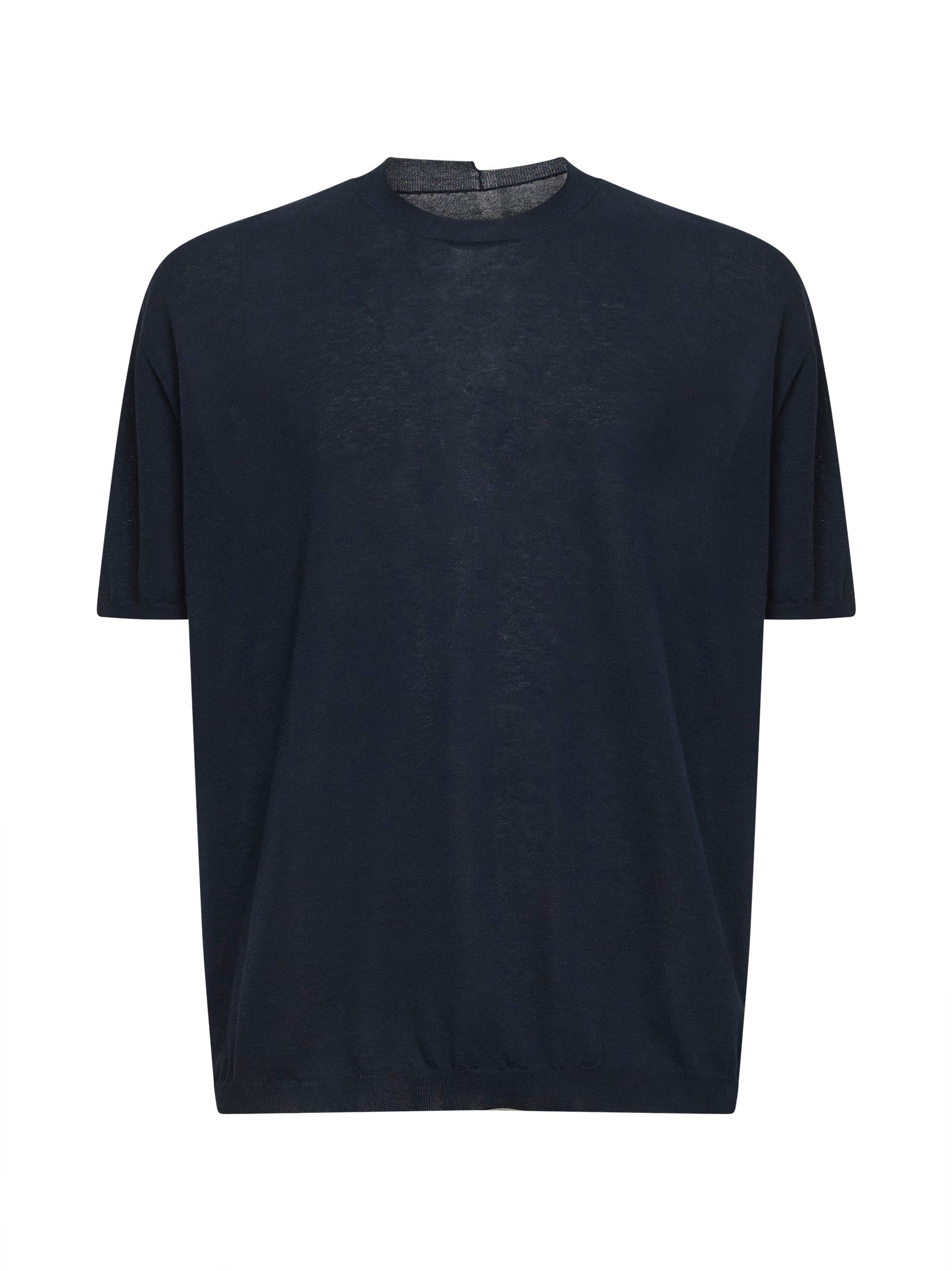 Blue wool and silk crepe crewneck sweater