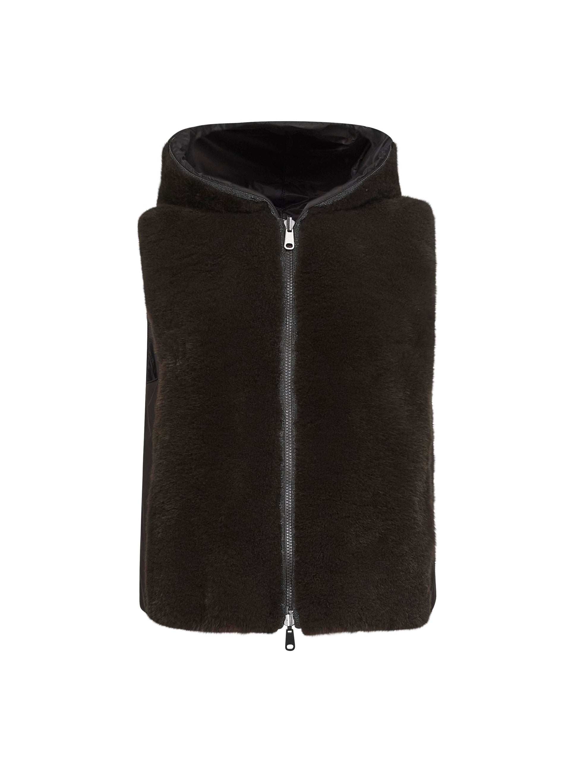 Brown fur and nylon reversible vest