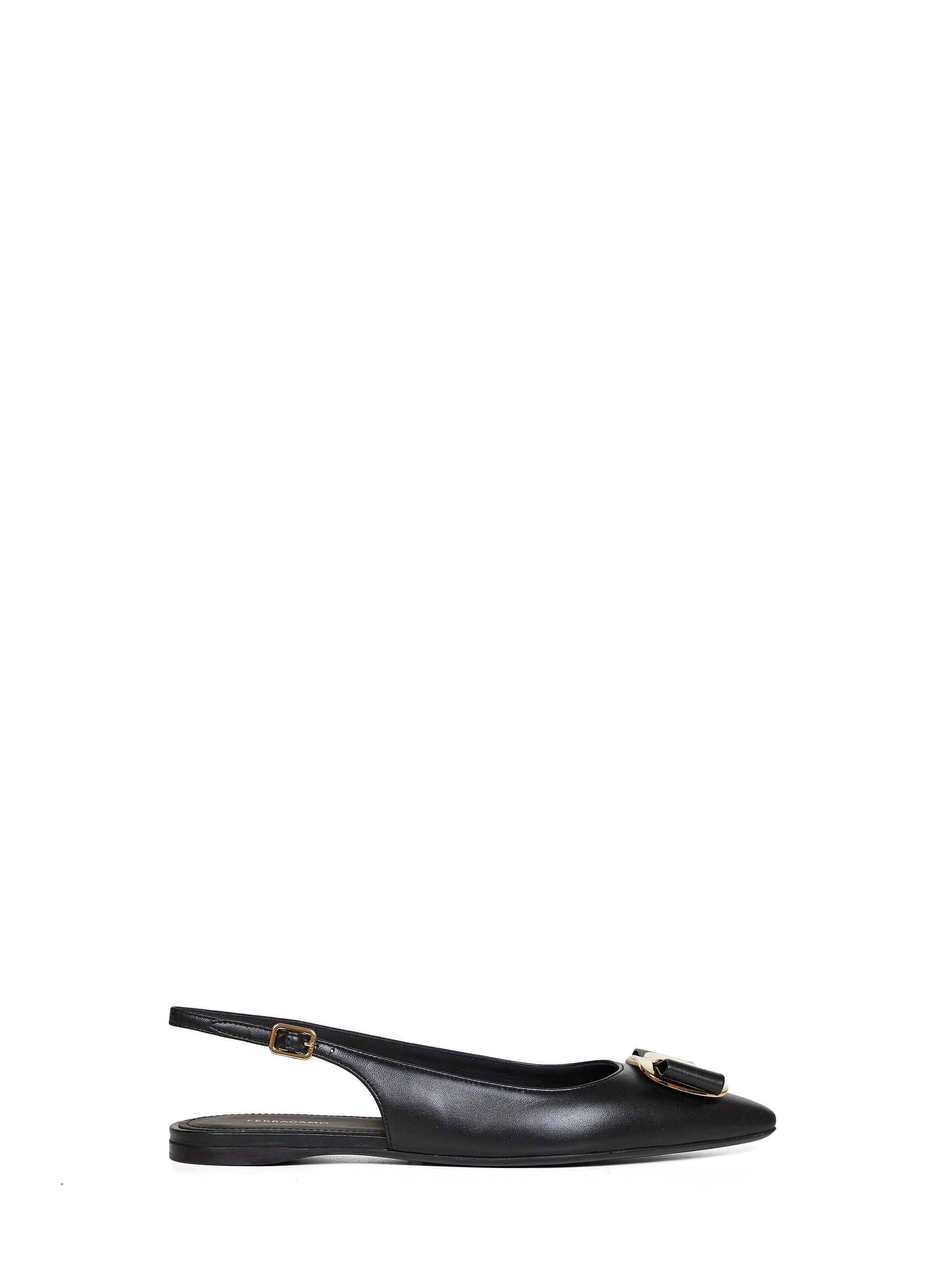 Black flat slingbacks with Vara plate