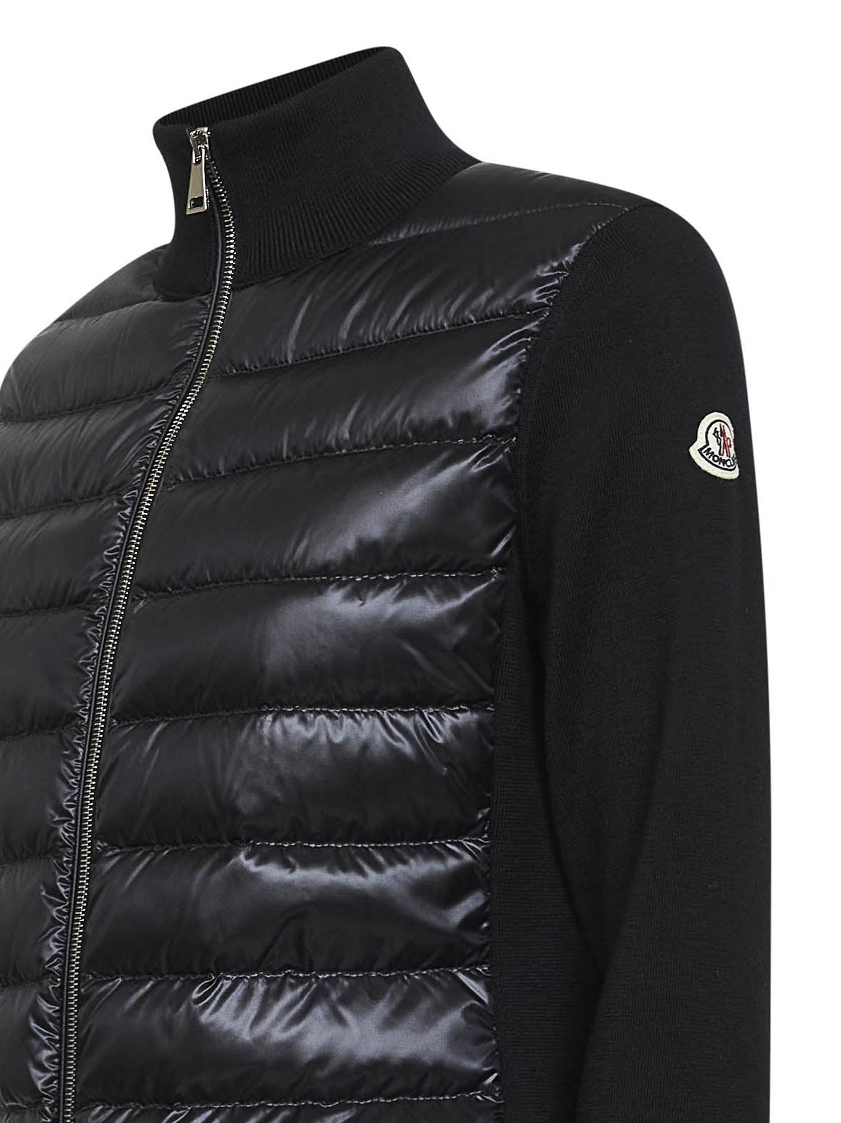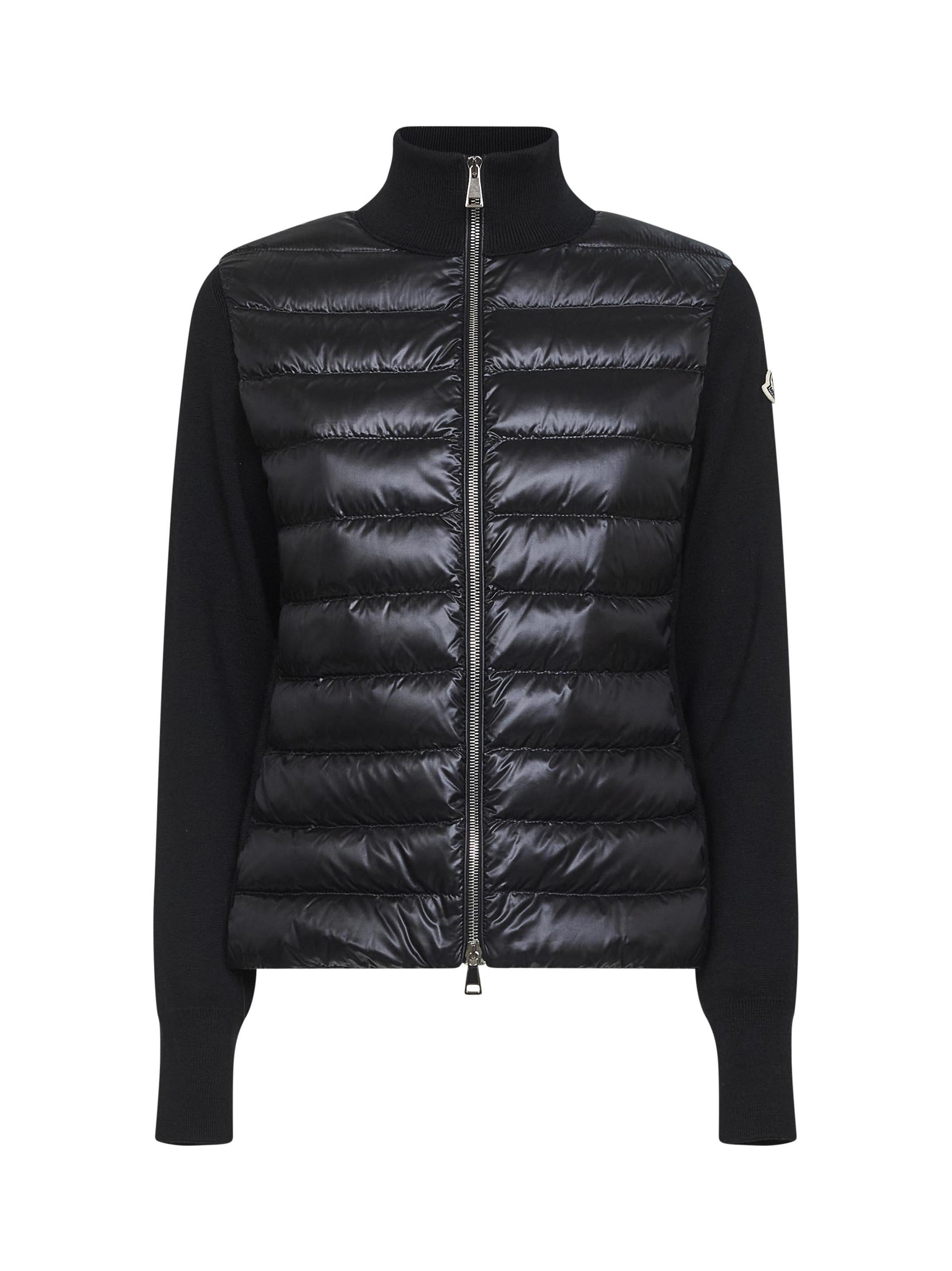 Black wool zip-up padded cardigan
