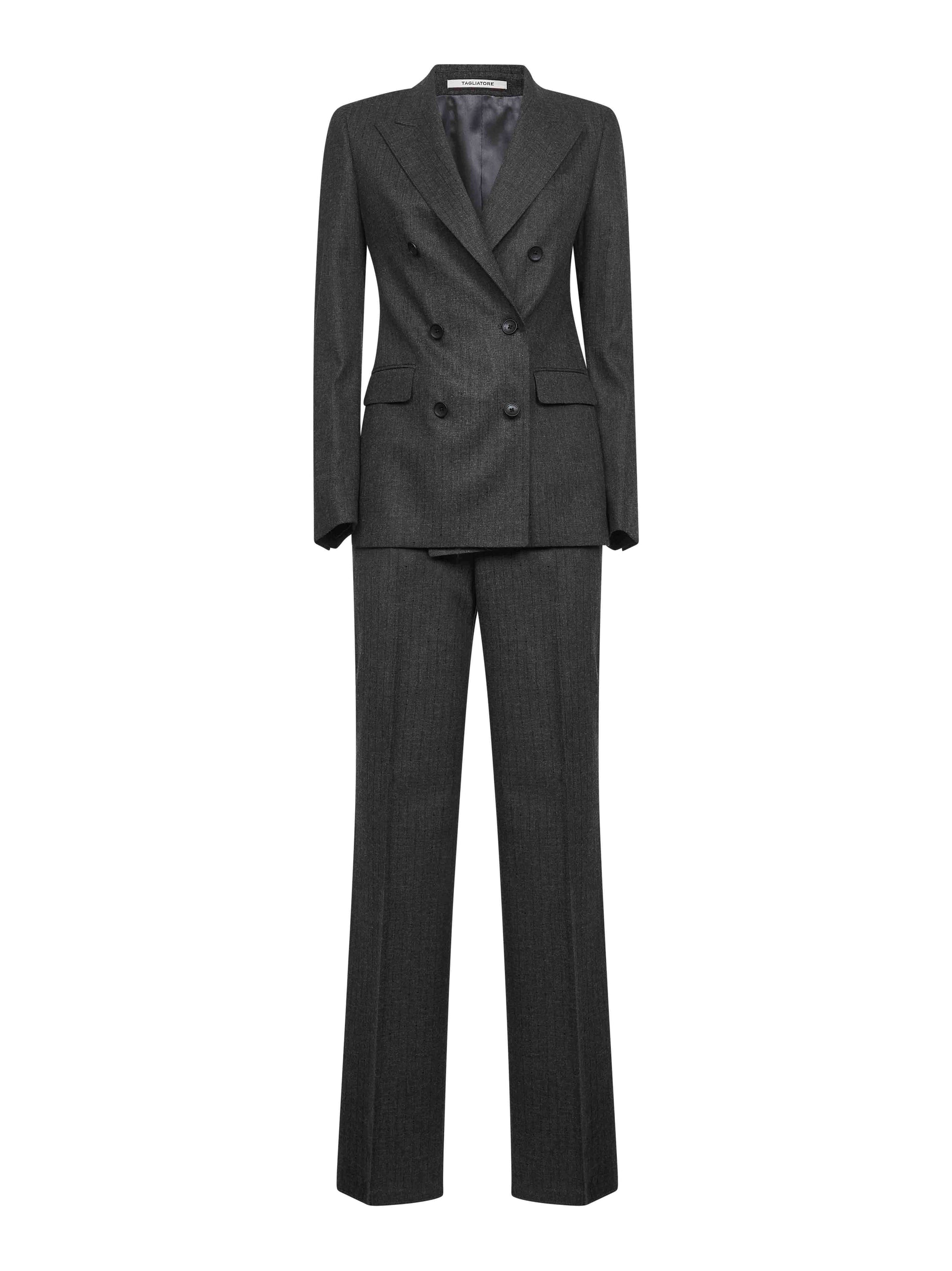 Grey micro sequin pinstripe wool blend Paris suit