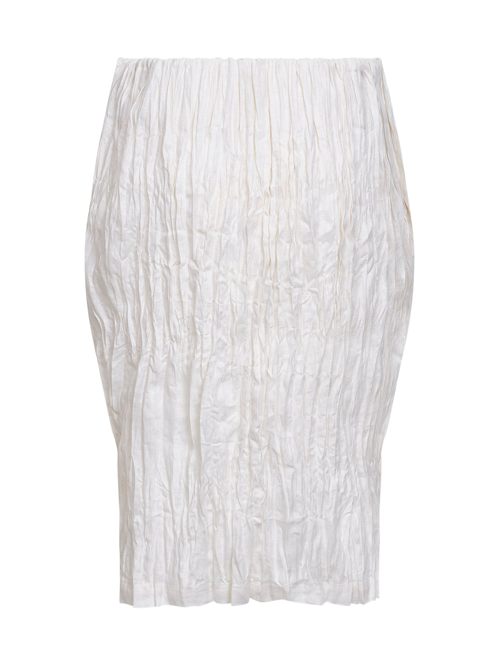 Gonna a tubino in lino stropicciato bianco