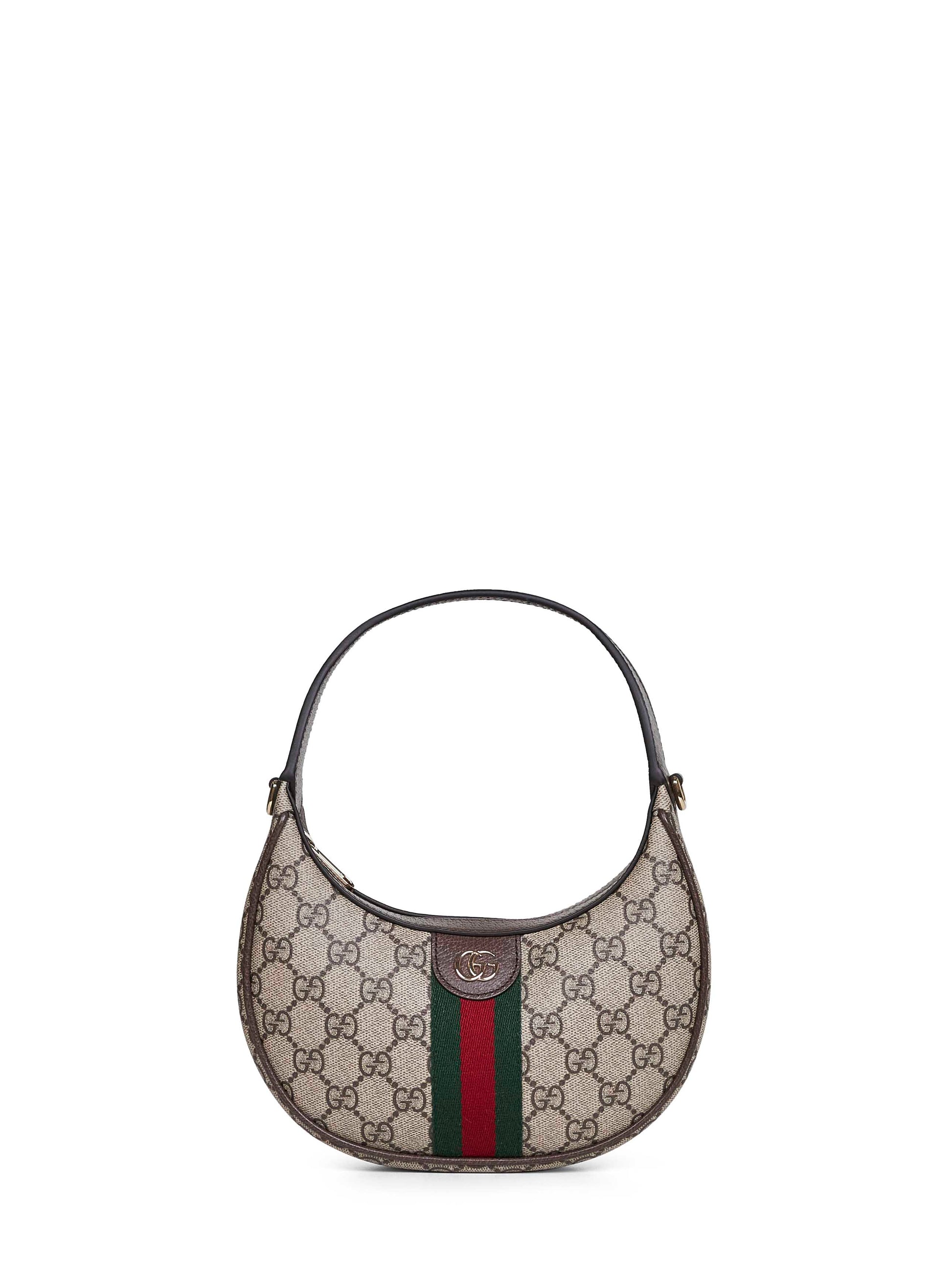 Borsa a spalla Ophidia piccola beige e marrone scuro