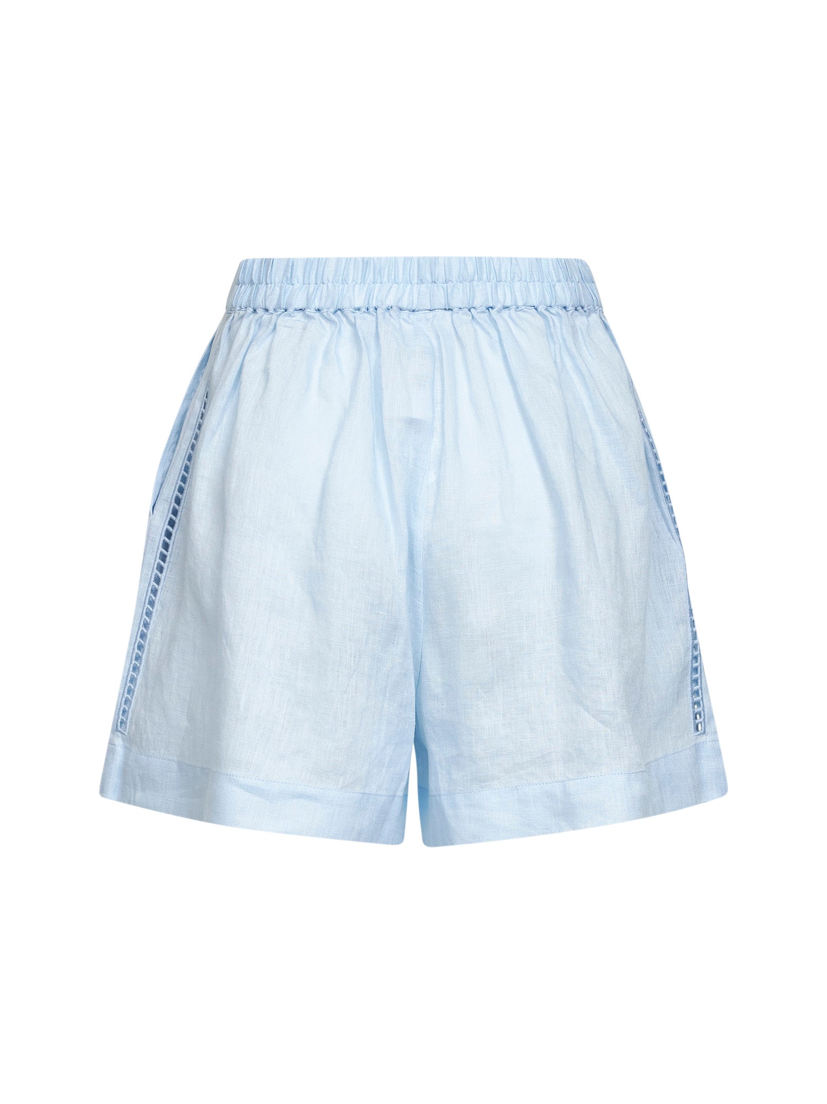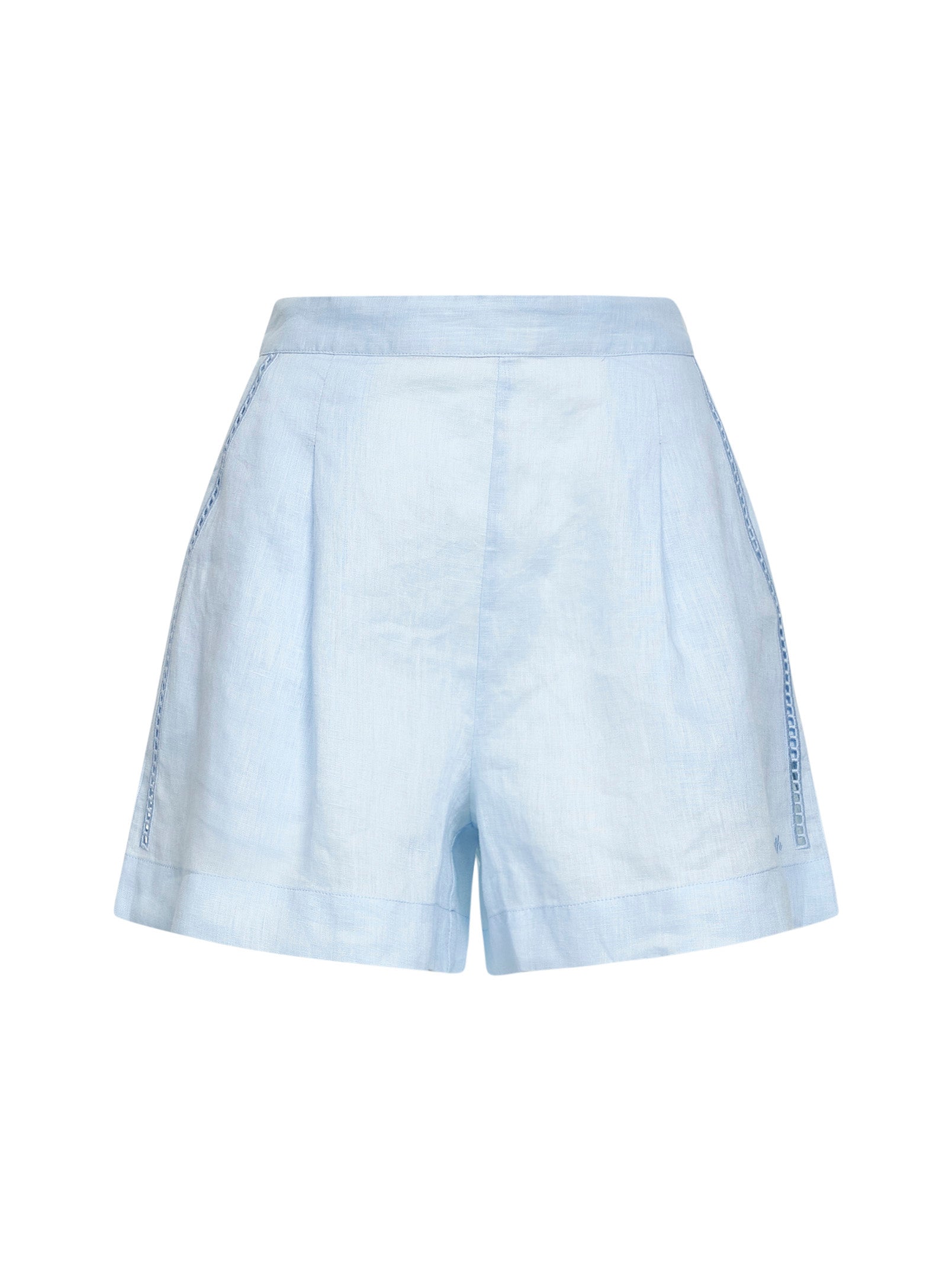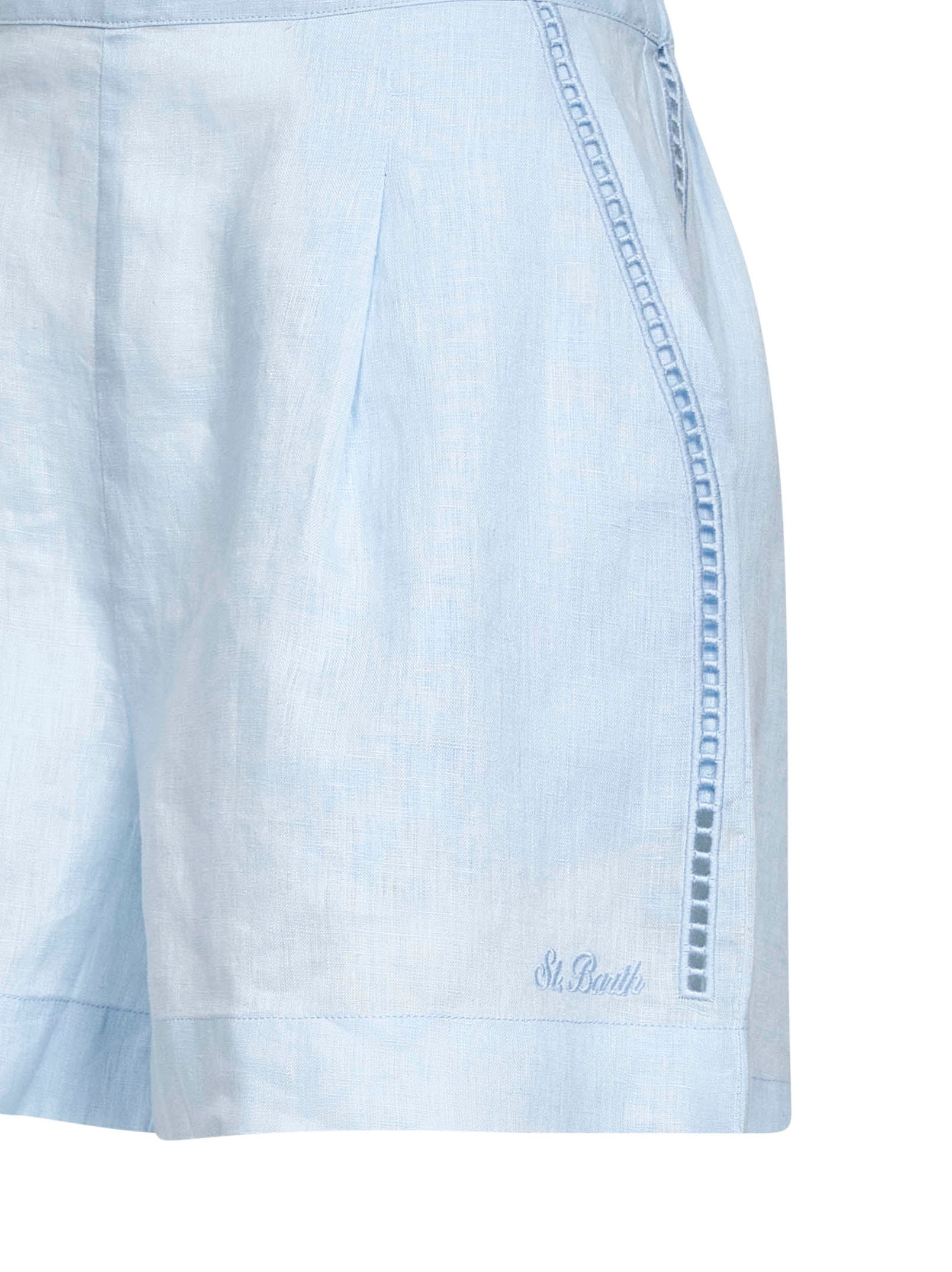 Shorts Amani in lino azzurro con ricami