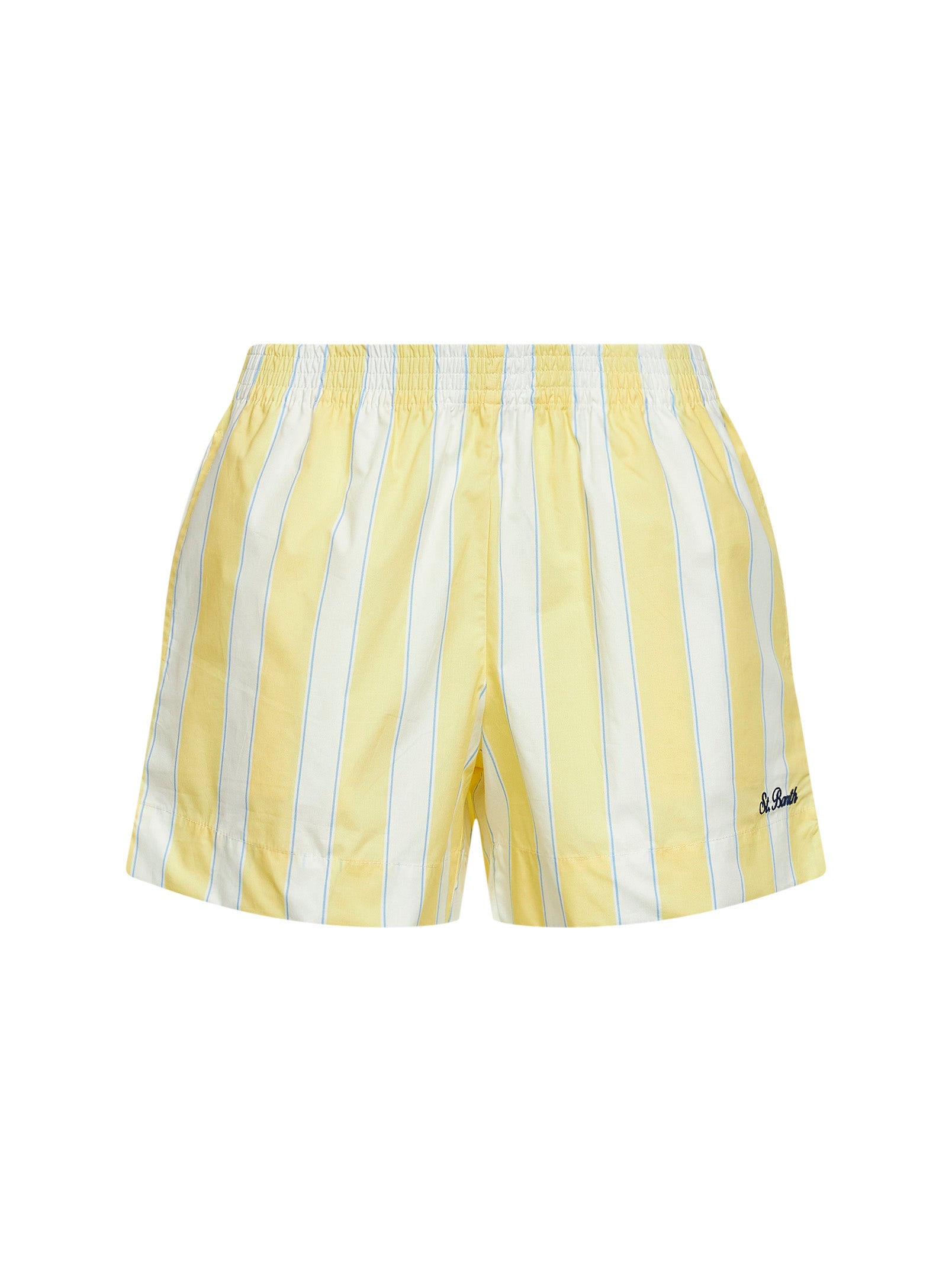 Shorts Meave in popeline a righe giallo e panna con ricamo