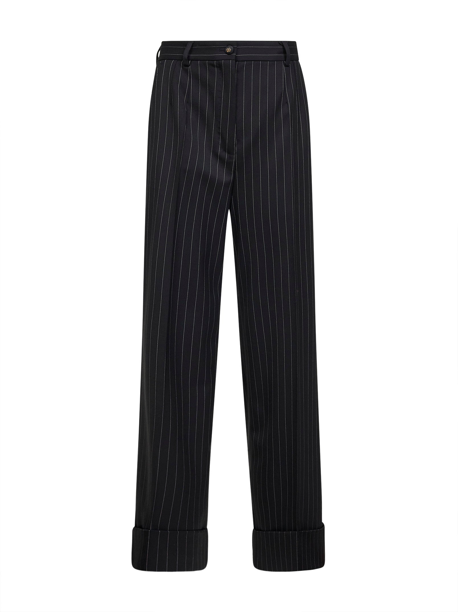 Pantaloni gessati in saglia bistretch nera