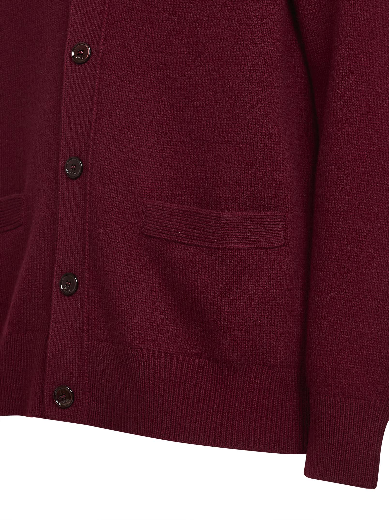 Cardigan in lana e cashmere bordeaux con ricamo