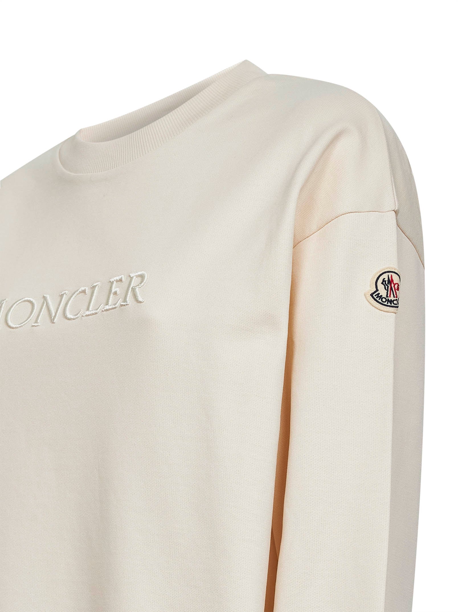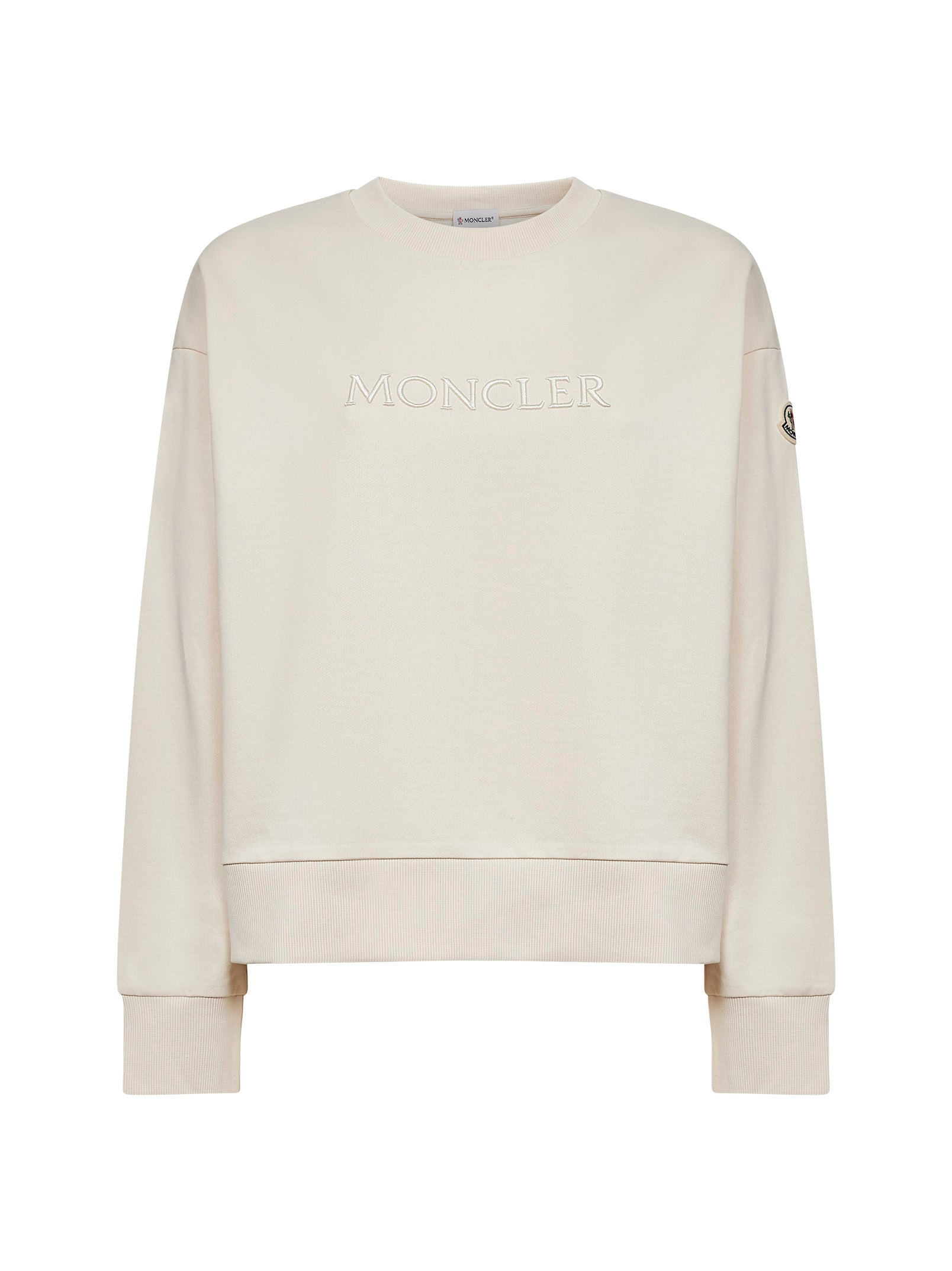 Felpa in cotone avorio con logo ricamato