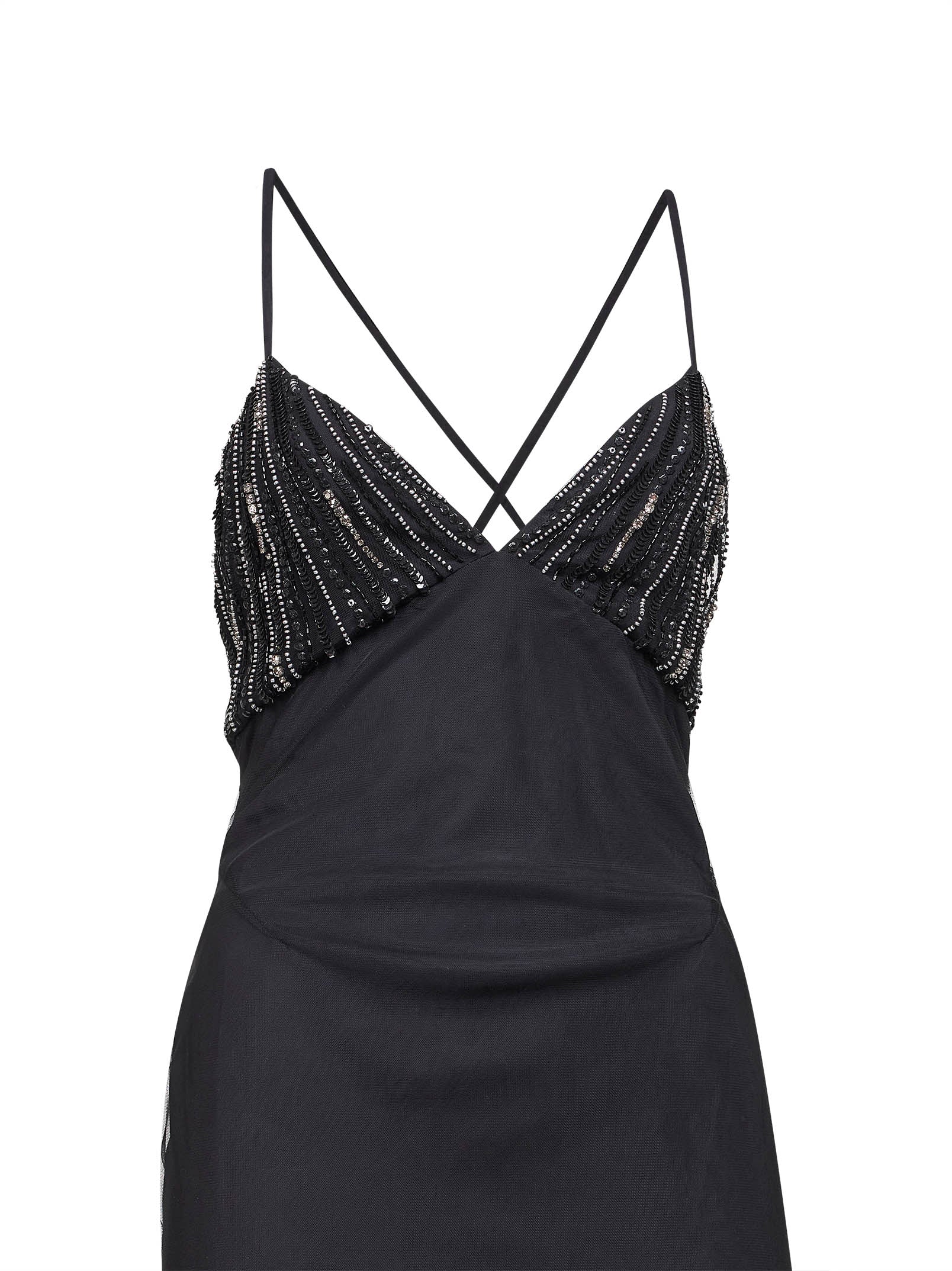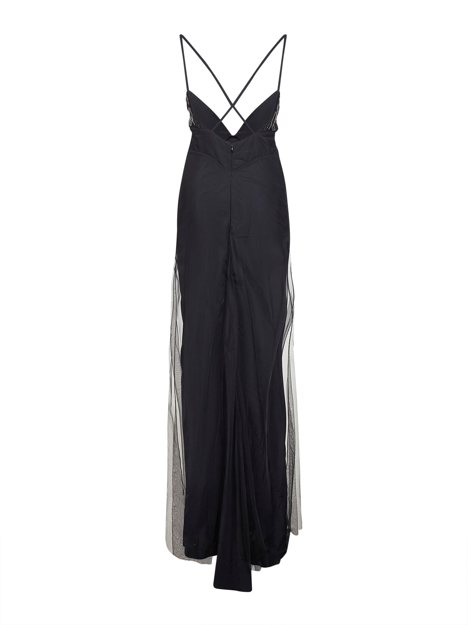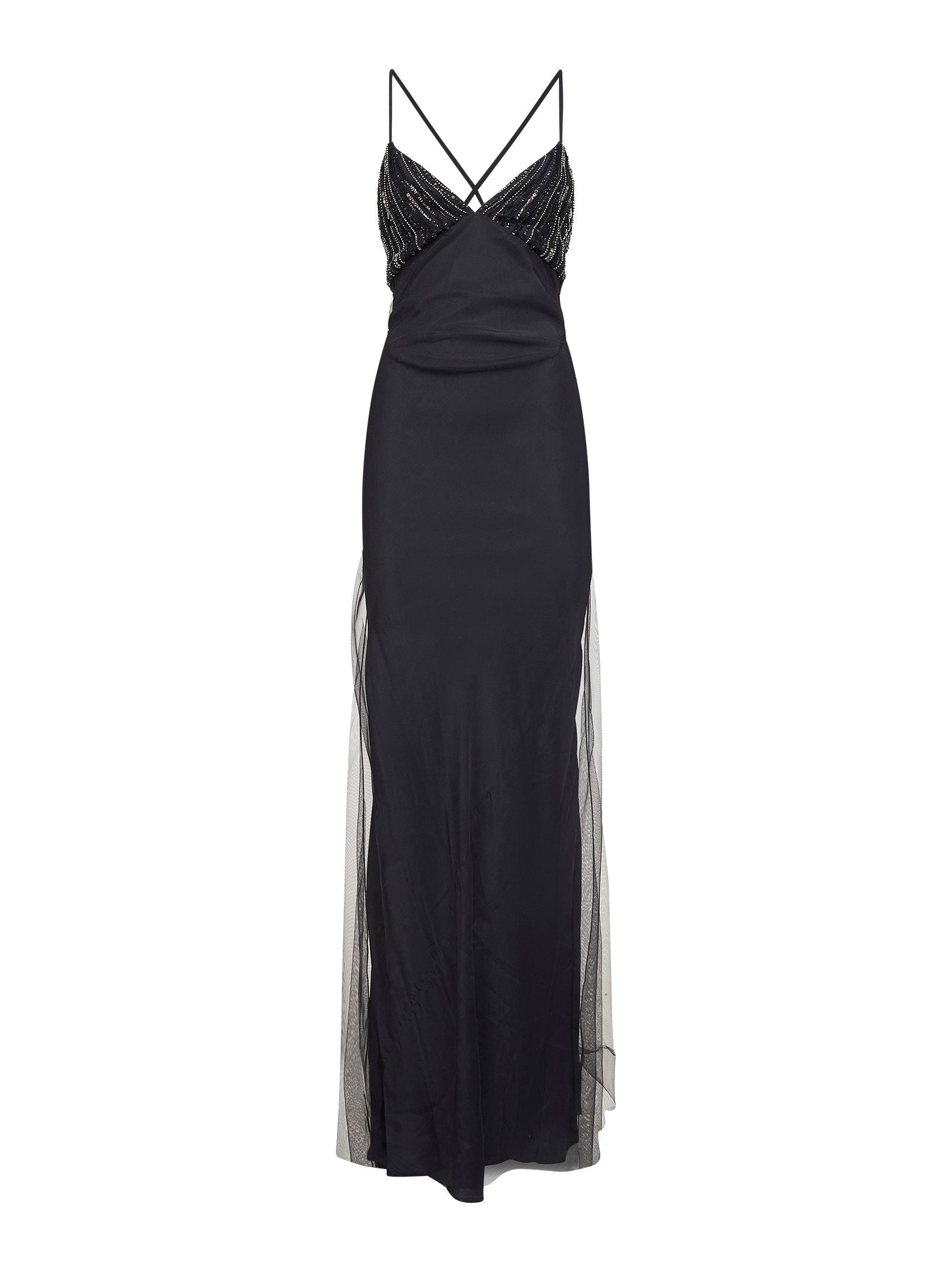 Abito lungo in tulle nero con coppe ricamate