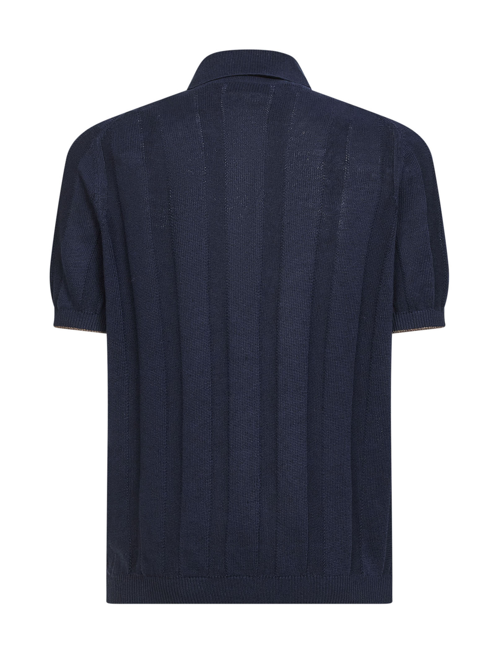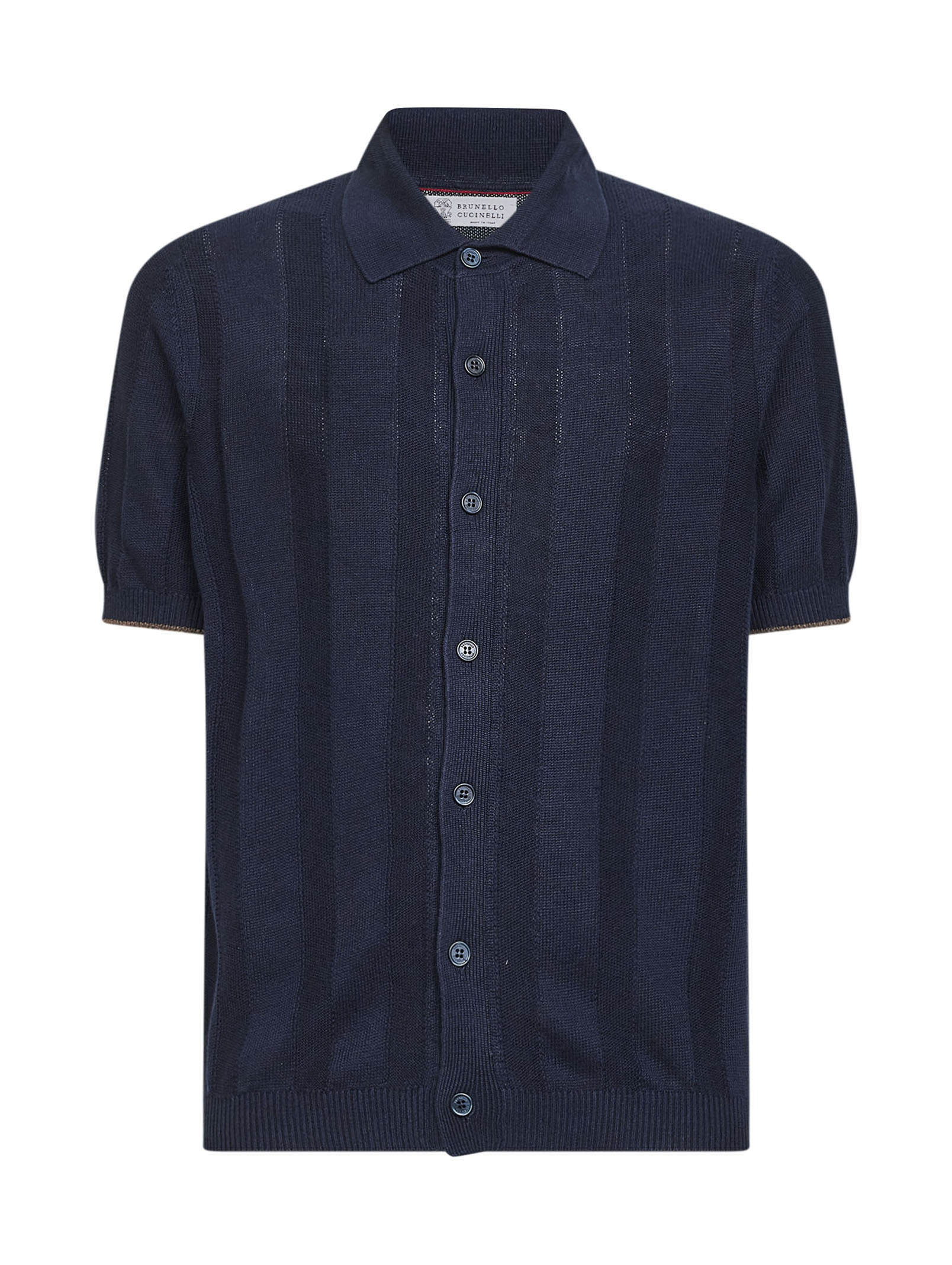 Camicia in maglia di lino e cotone a costa operata blu