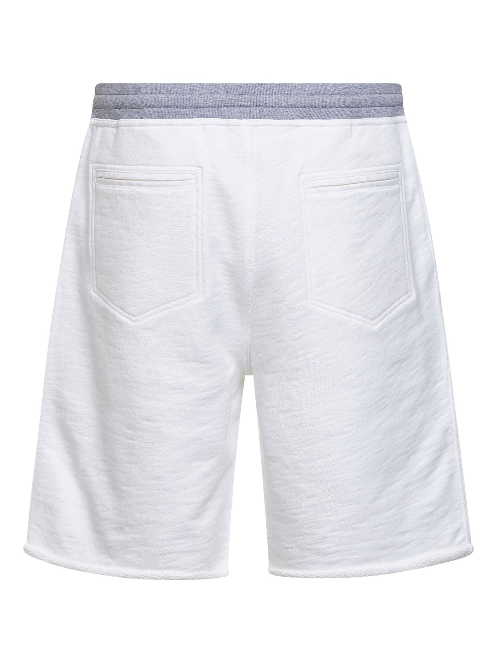 Bermuda in felpa mélange di cotone e lino bianco con logo