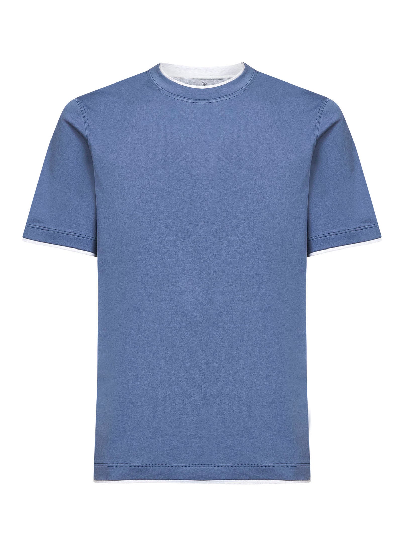 T-shirt in cotone azzurro con Faux Layering