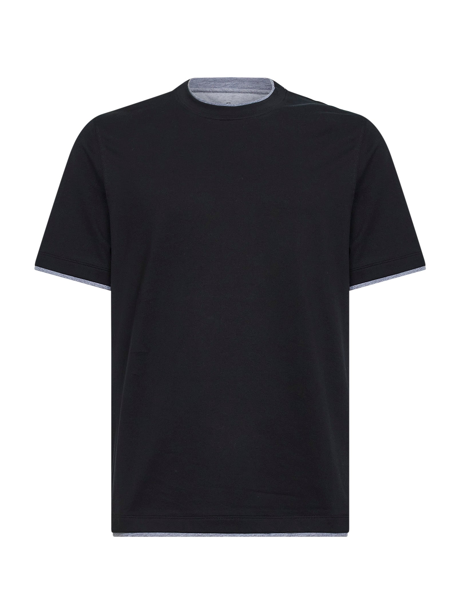 T-shirt in cotone nero con Faux Layering