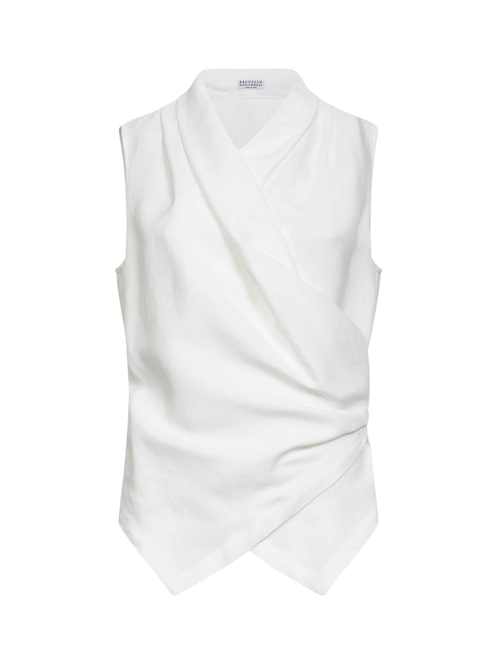 Gilet in twill Fluid di viscosa e lino bianco con monile