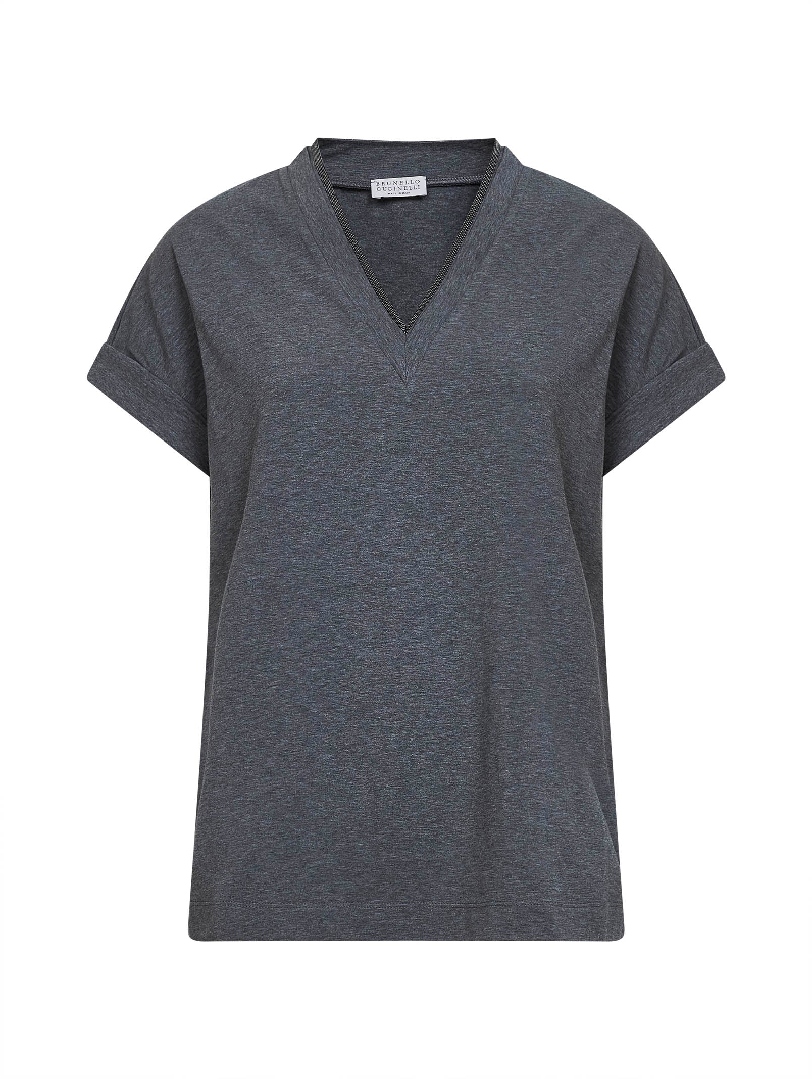T-Shirt in jersey stretch grigio con Precious Neckline