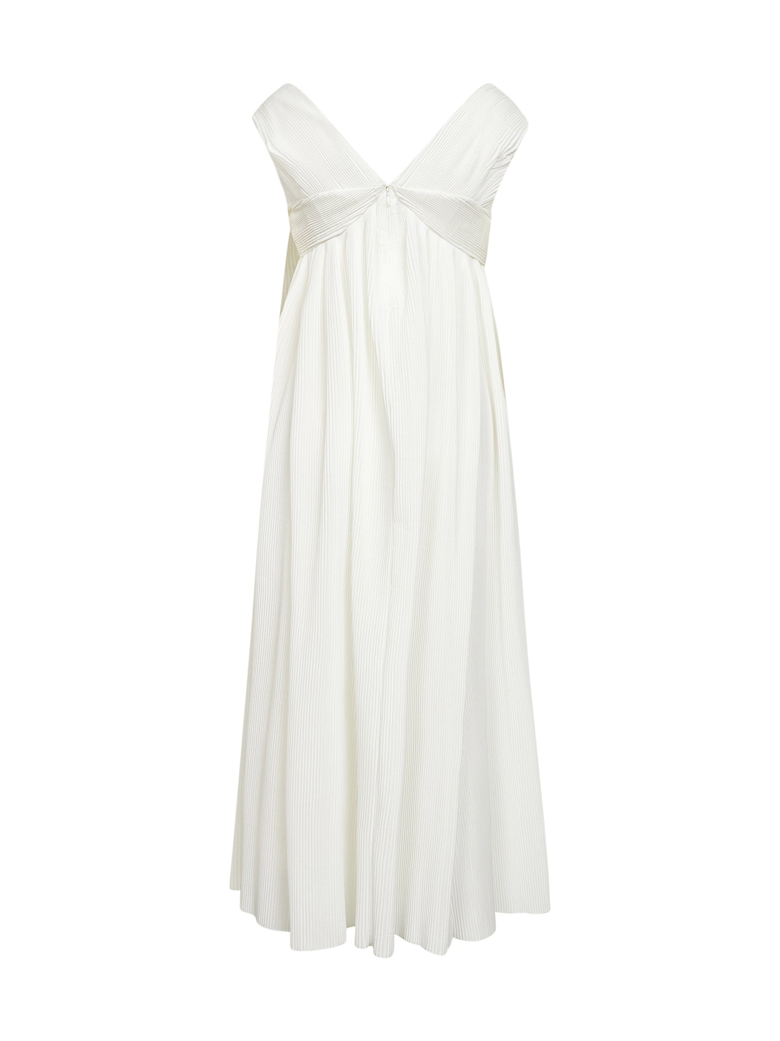 Abito lungo in tessuto plissé bianco