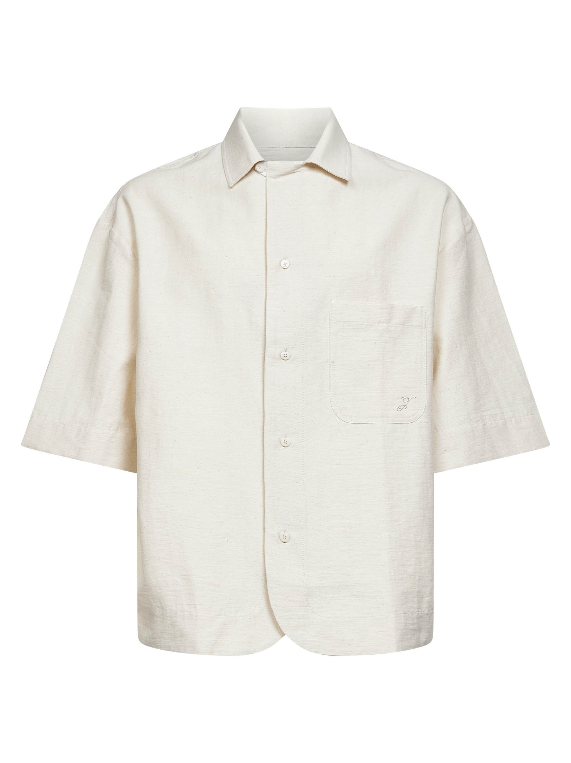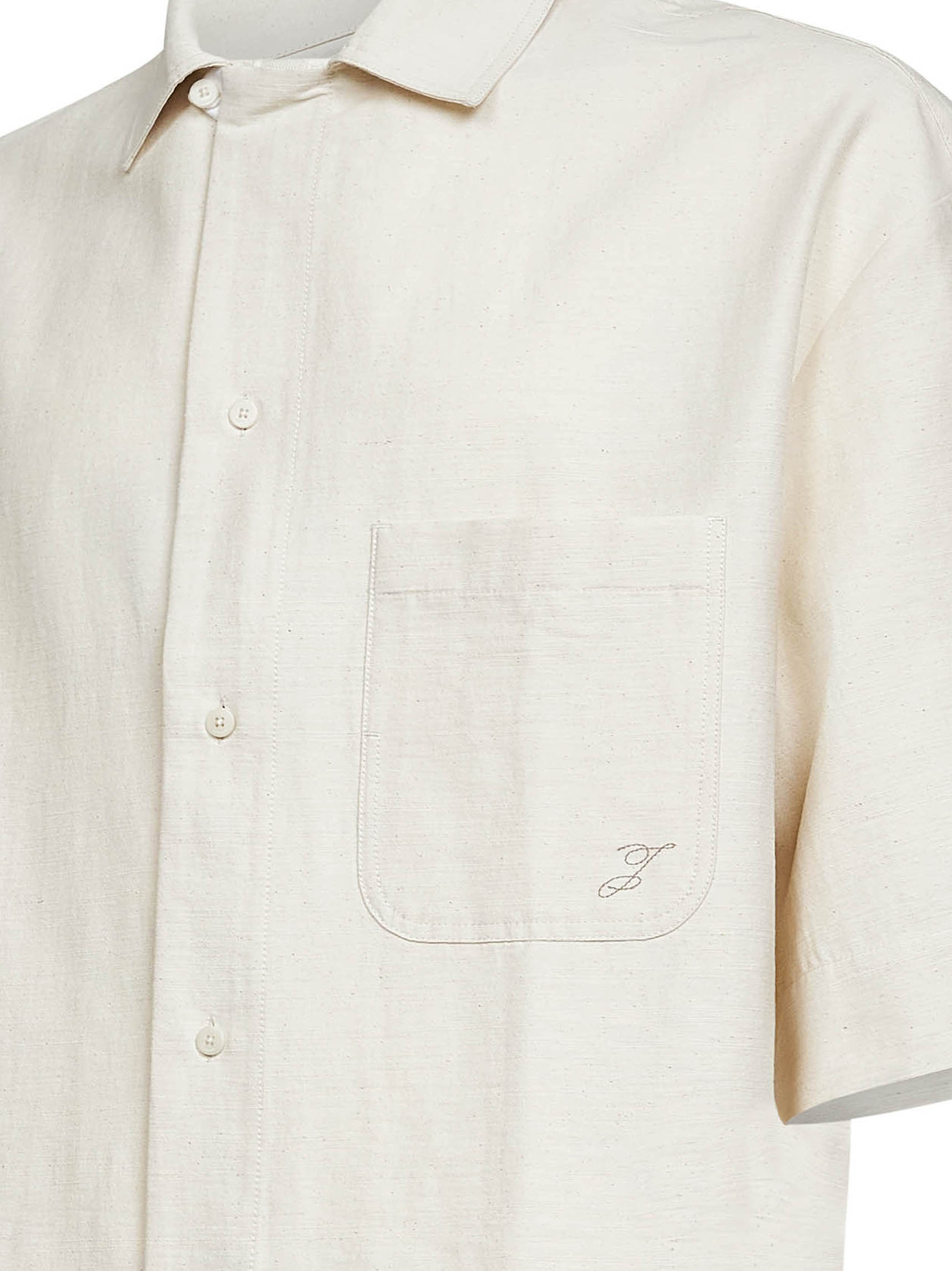 Camicia Paysan in tela di misto cotone bianco sporco