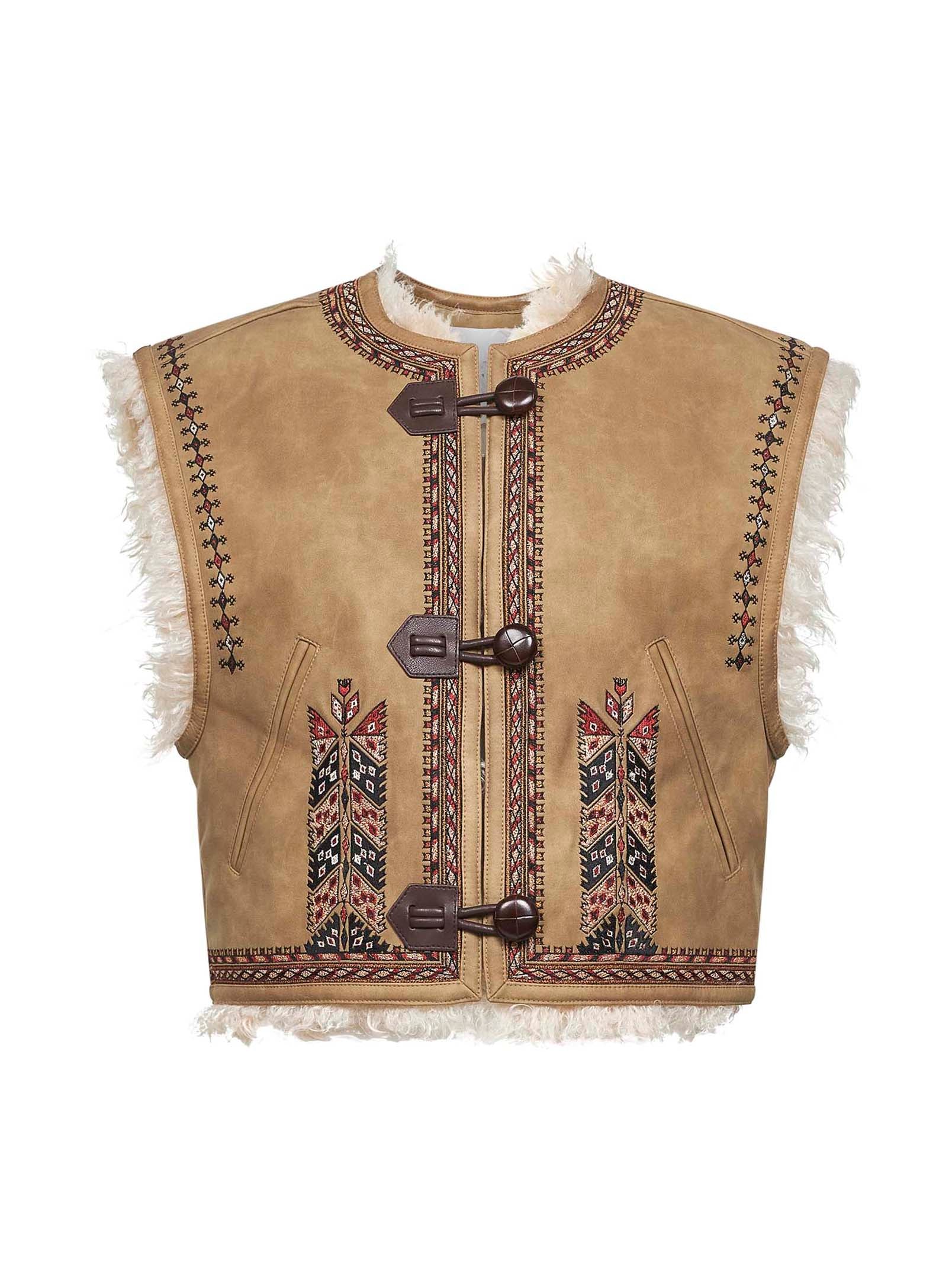 Gilet Clemencia effetto shearling ricamato beige