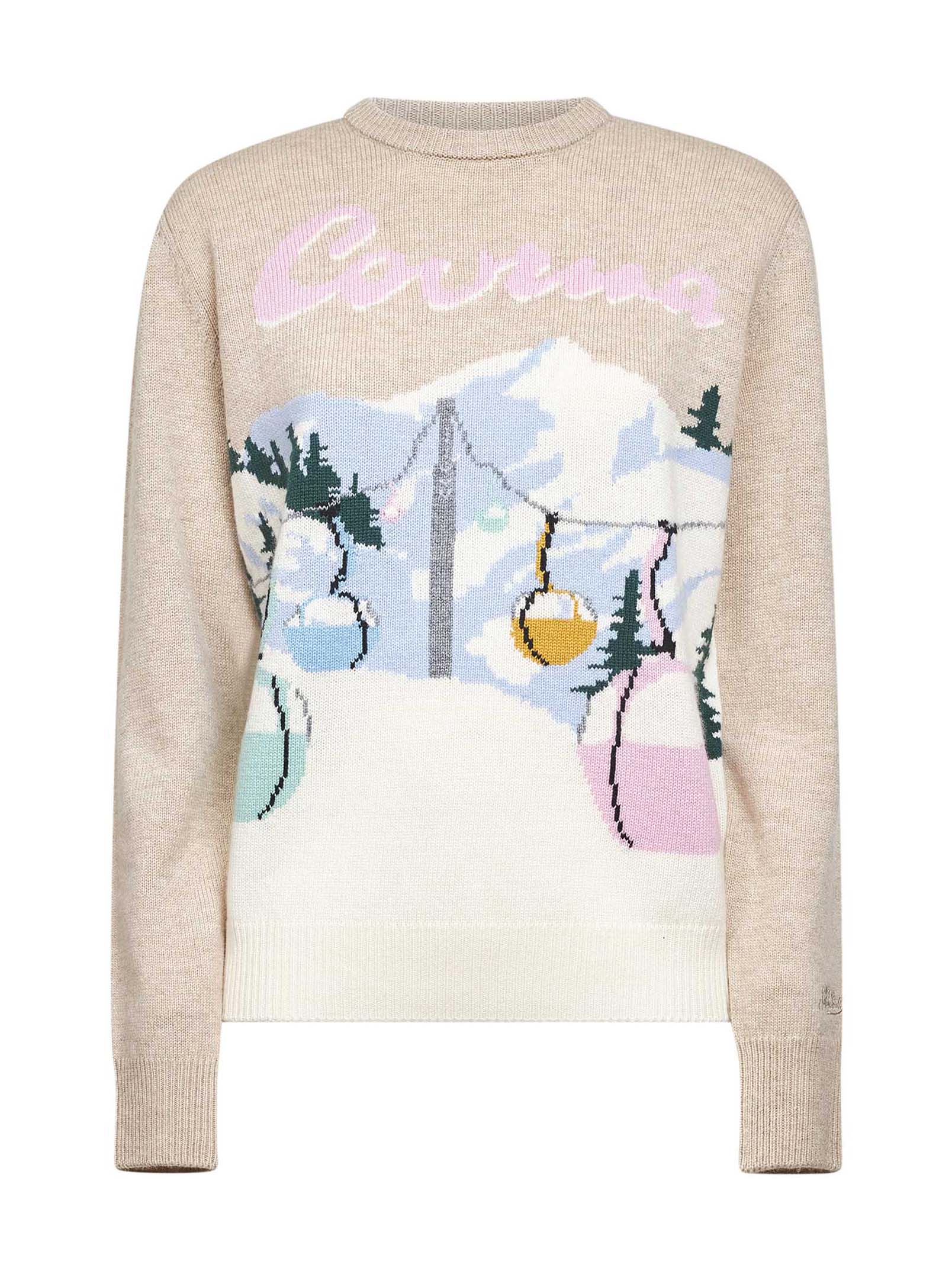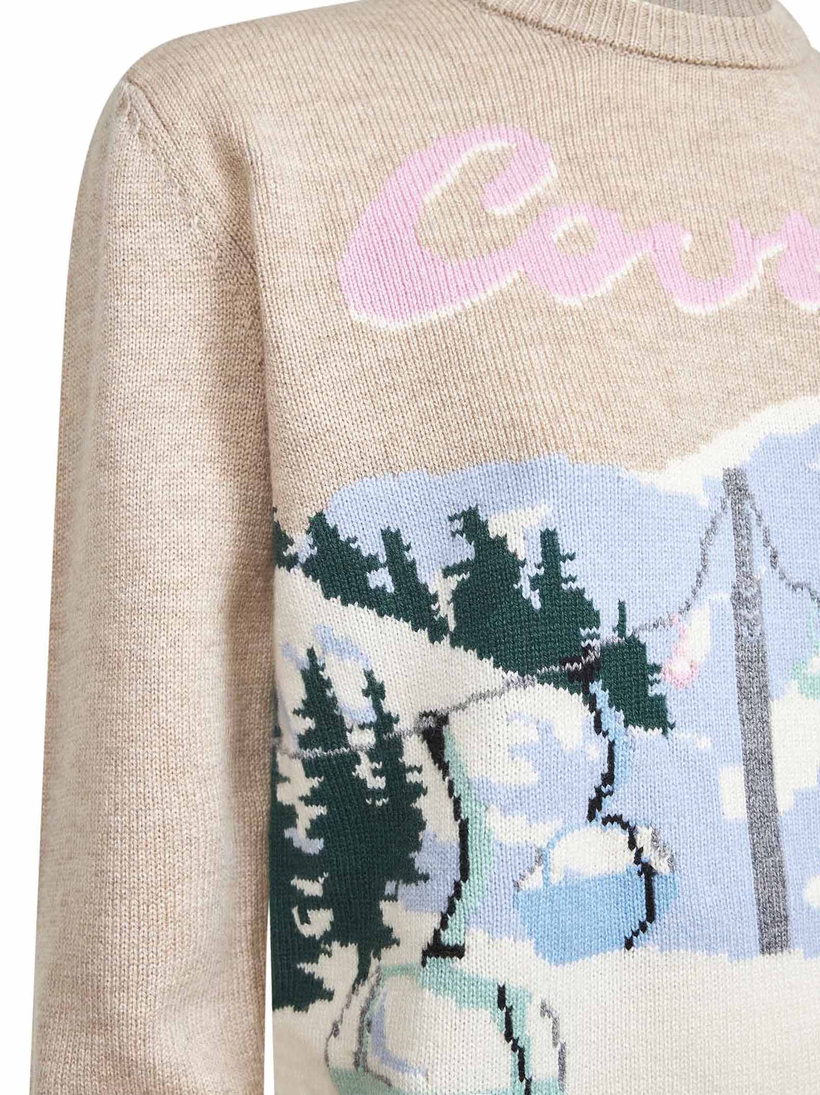 Maglione New Queen beige con cartolina jacquard