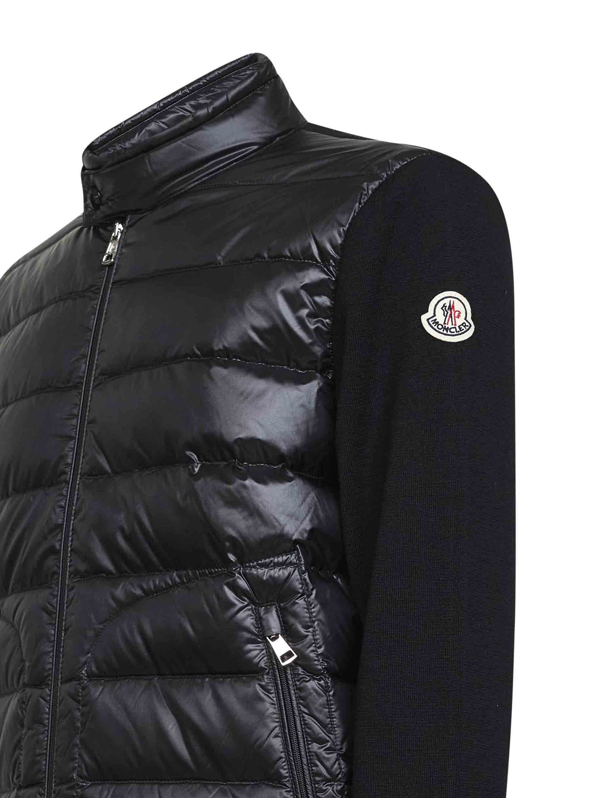 Cardigan imbottito con zip in lana nera
