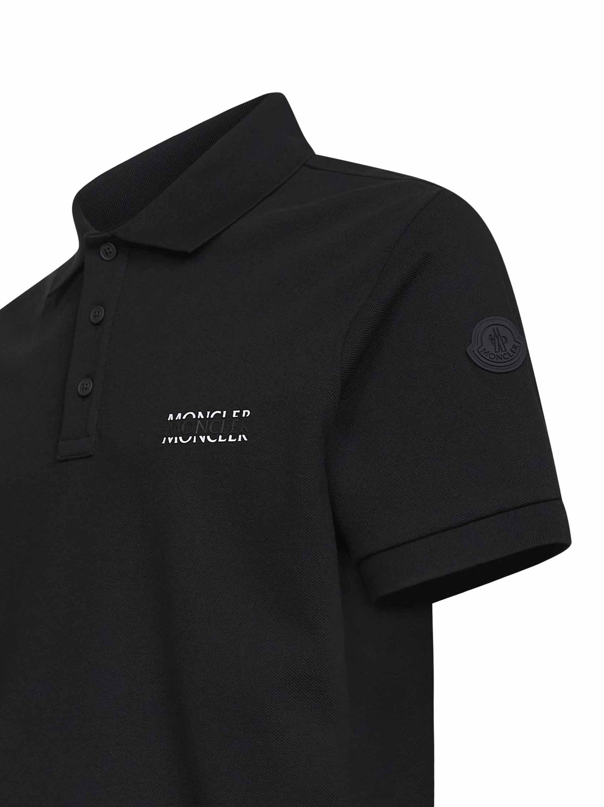 Polo in piquet di cotone nero con logo