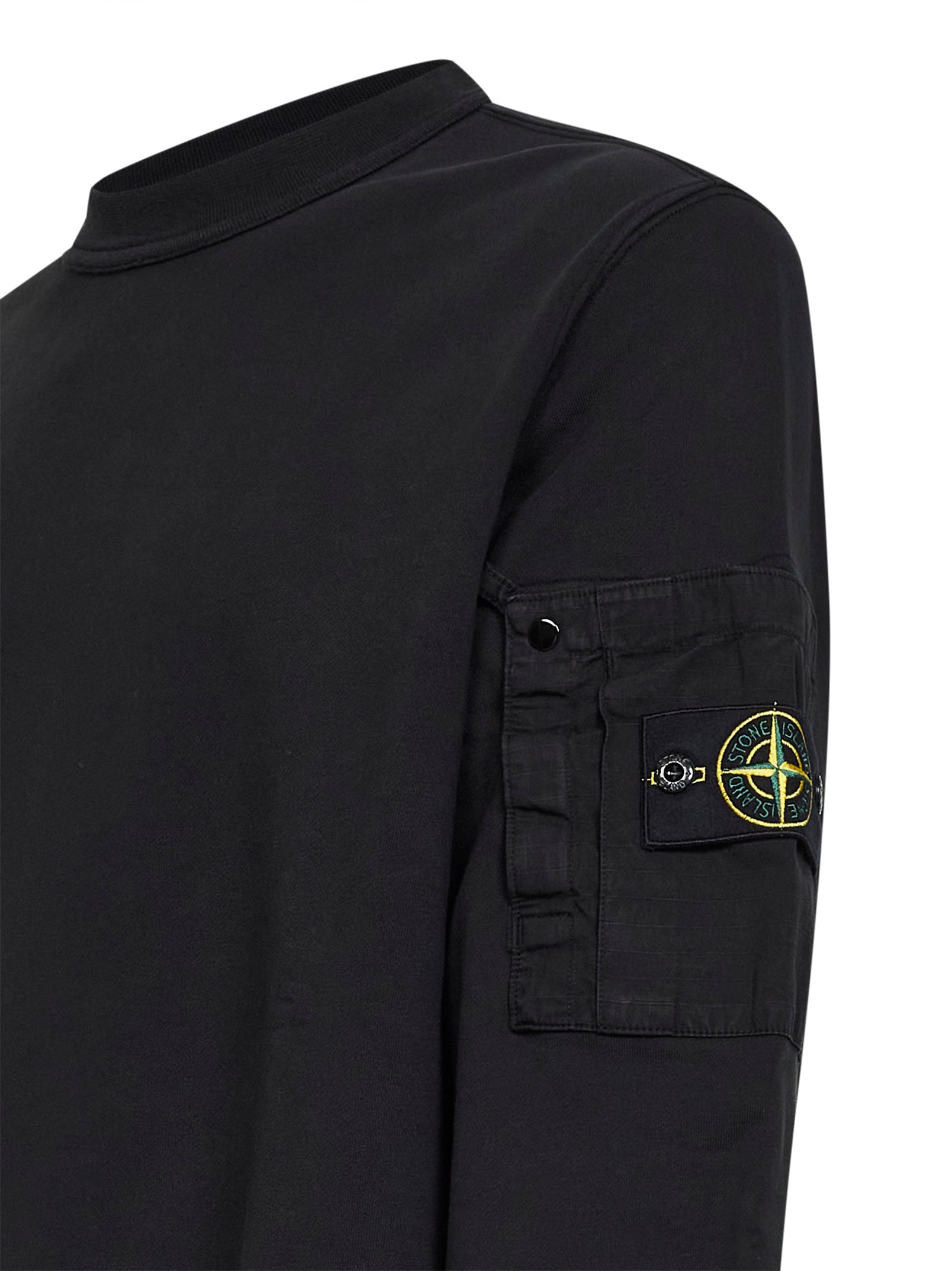 Felpa in cotone nero con tasca in cotone ripstop