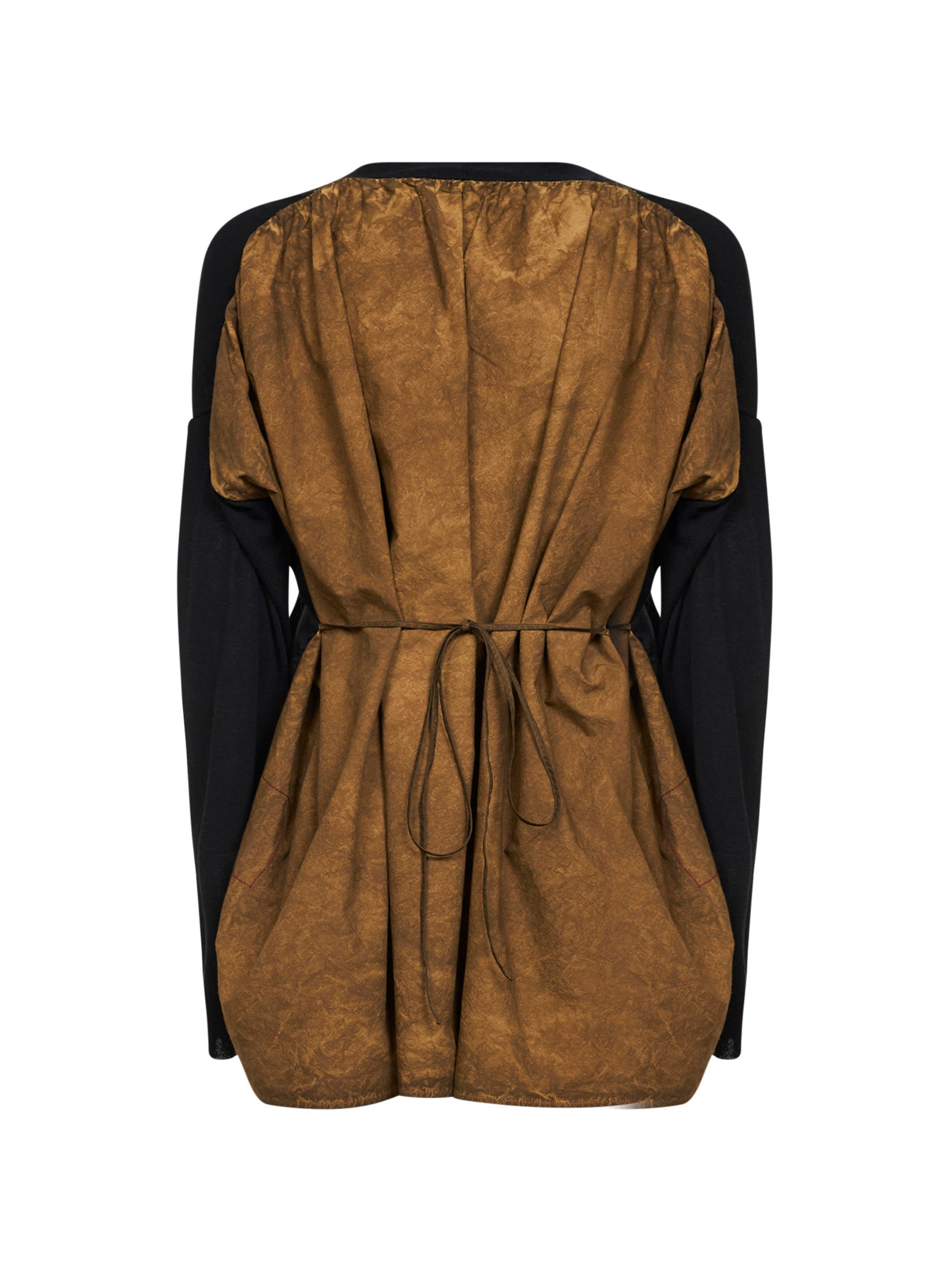Cardigan combinato in cotone e seta nero e mostarda