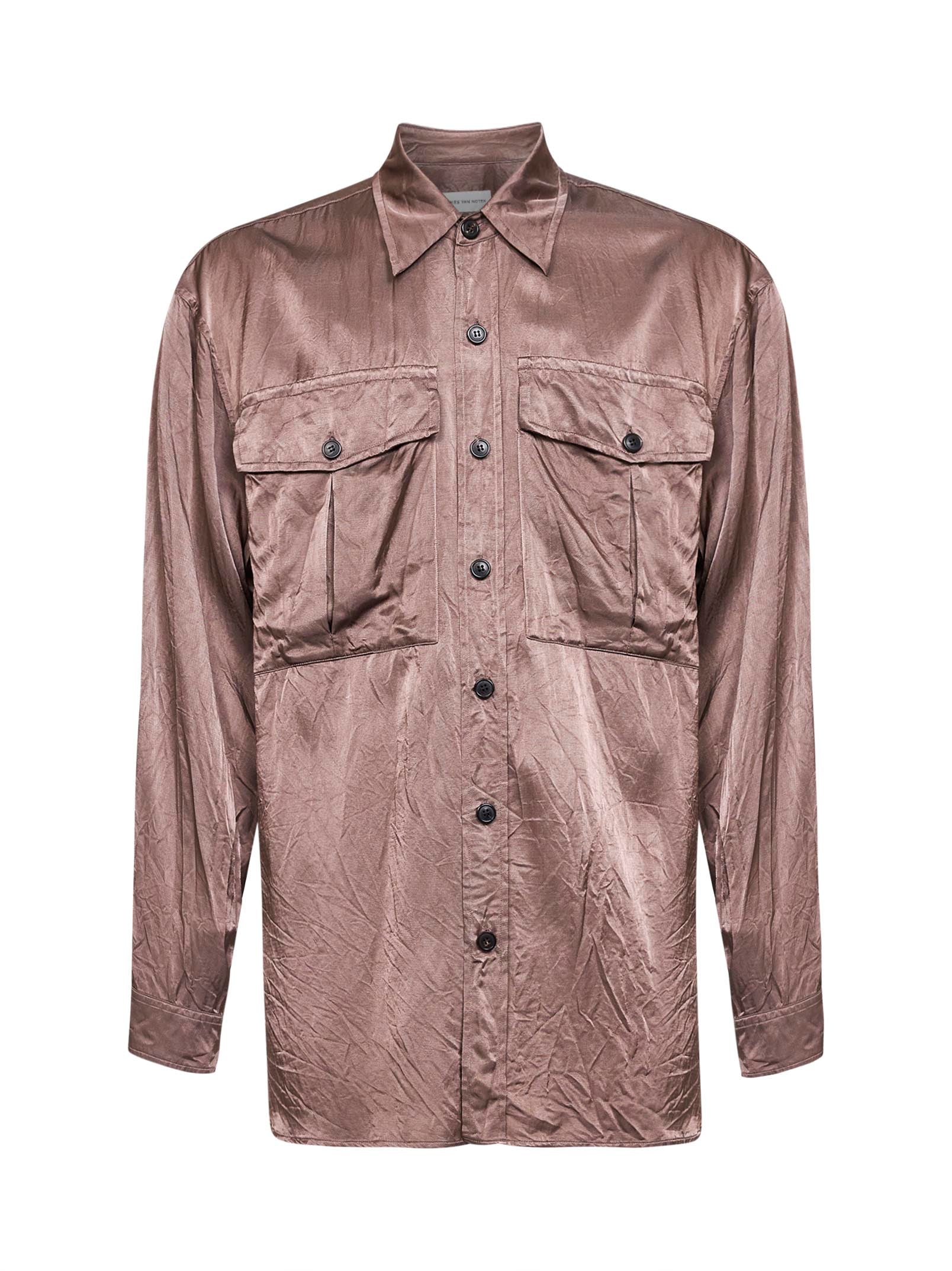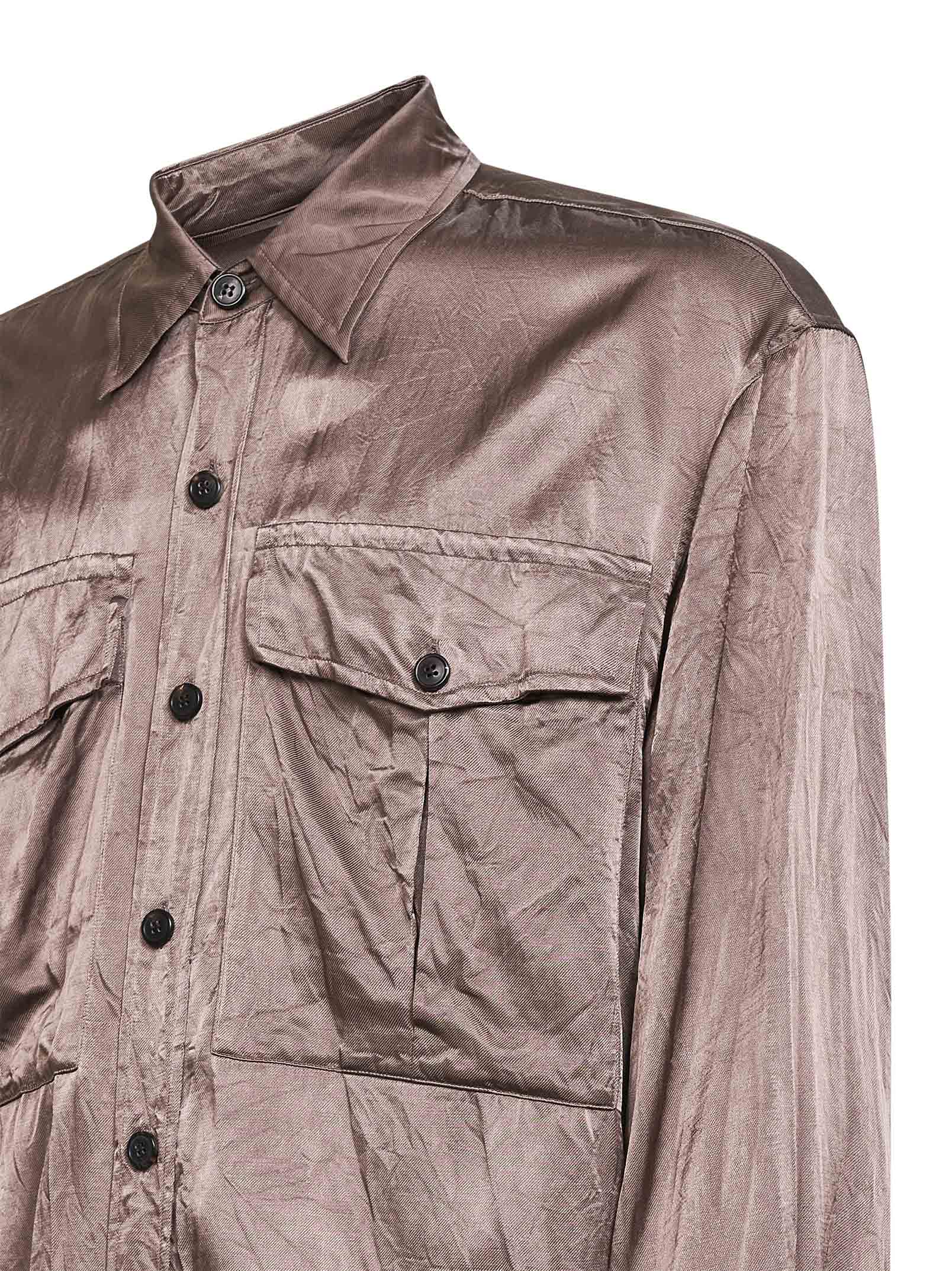 Camicia in viscosa e cotone rosa con tasche sul petto