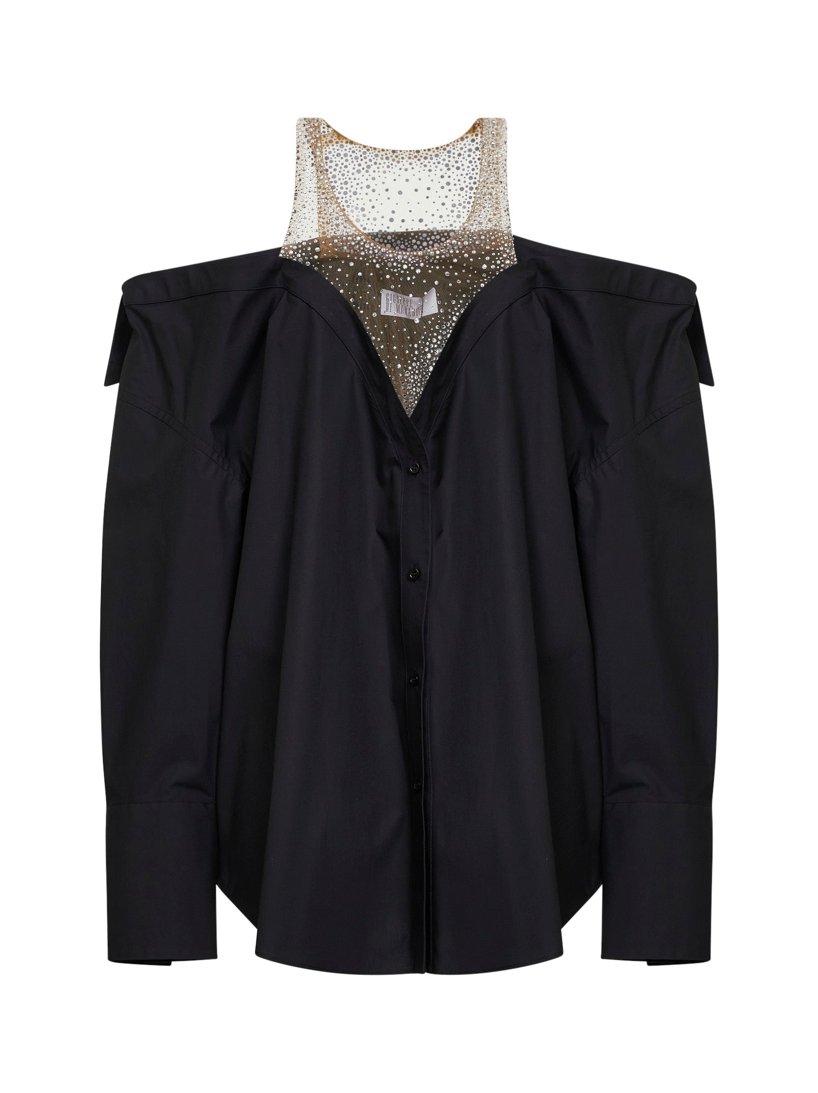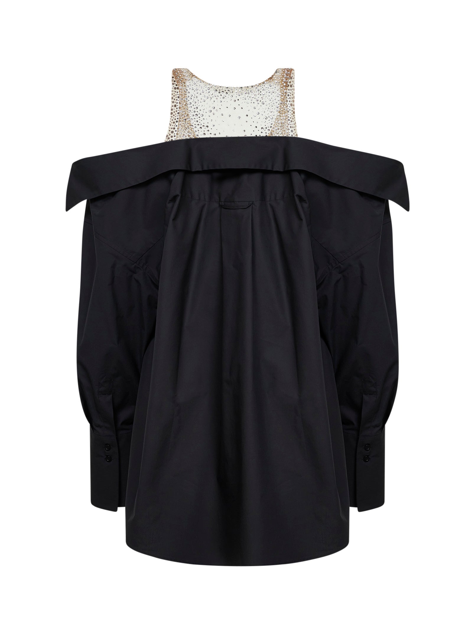 Miniabito in popeline nero con inserto con cristalli