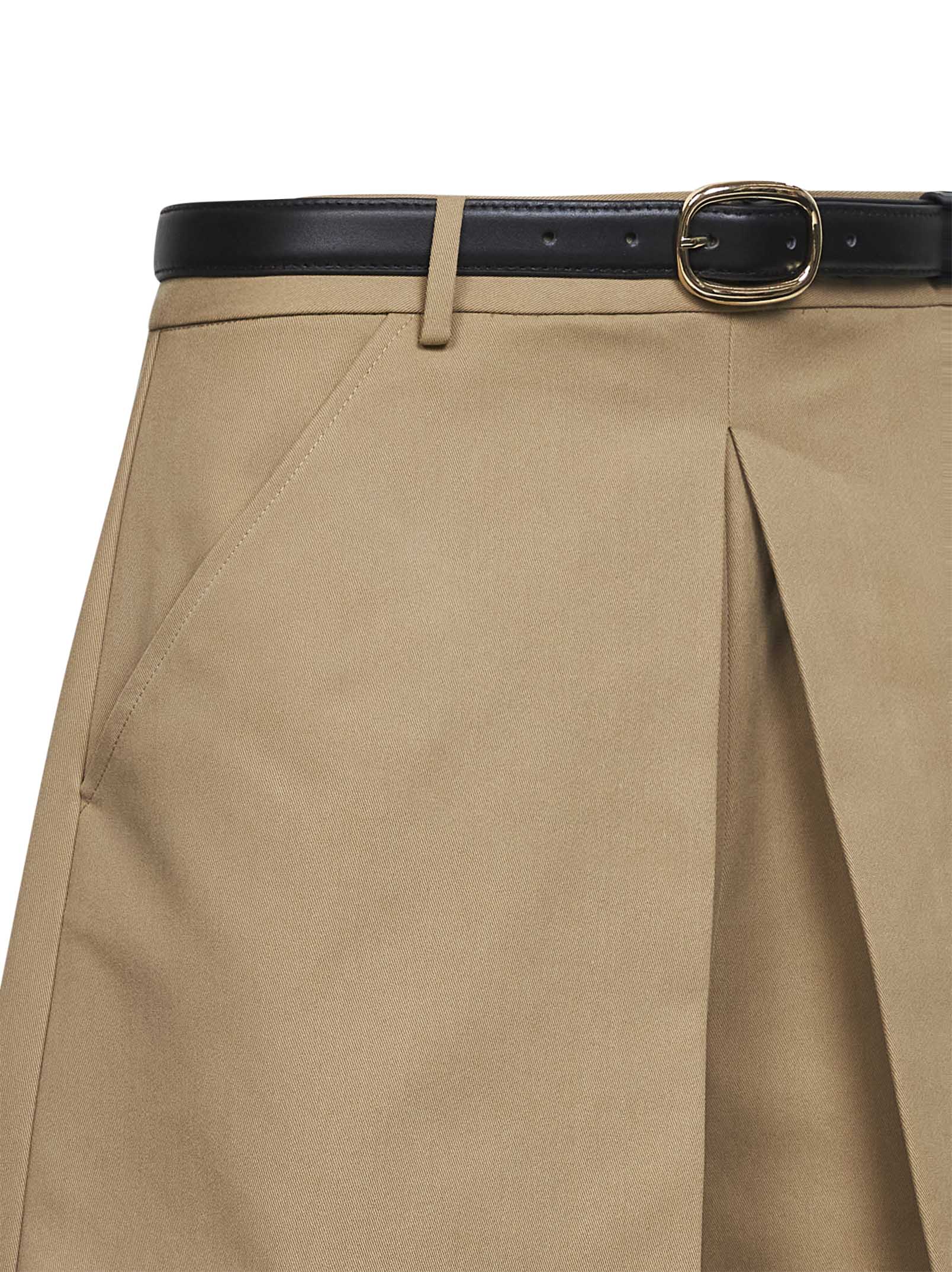 Skort con cintura in gabardina di misto cotone beige