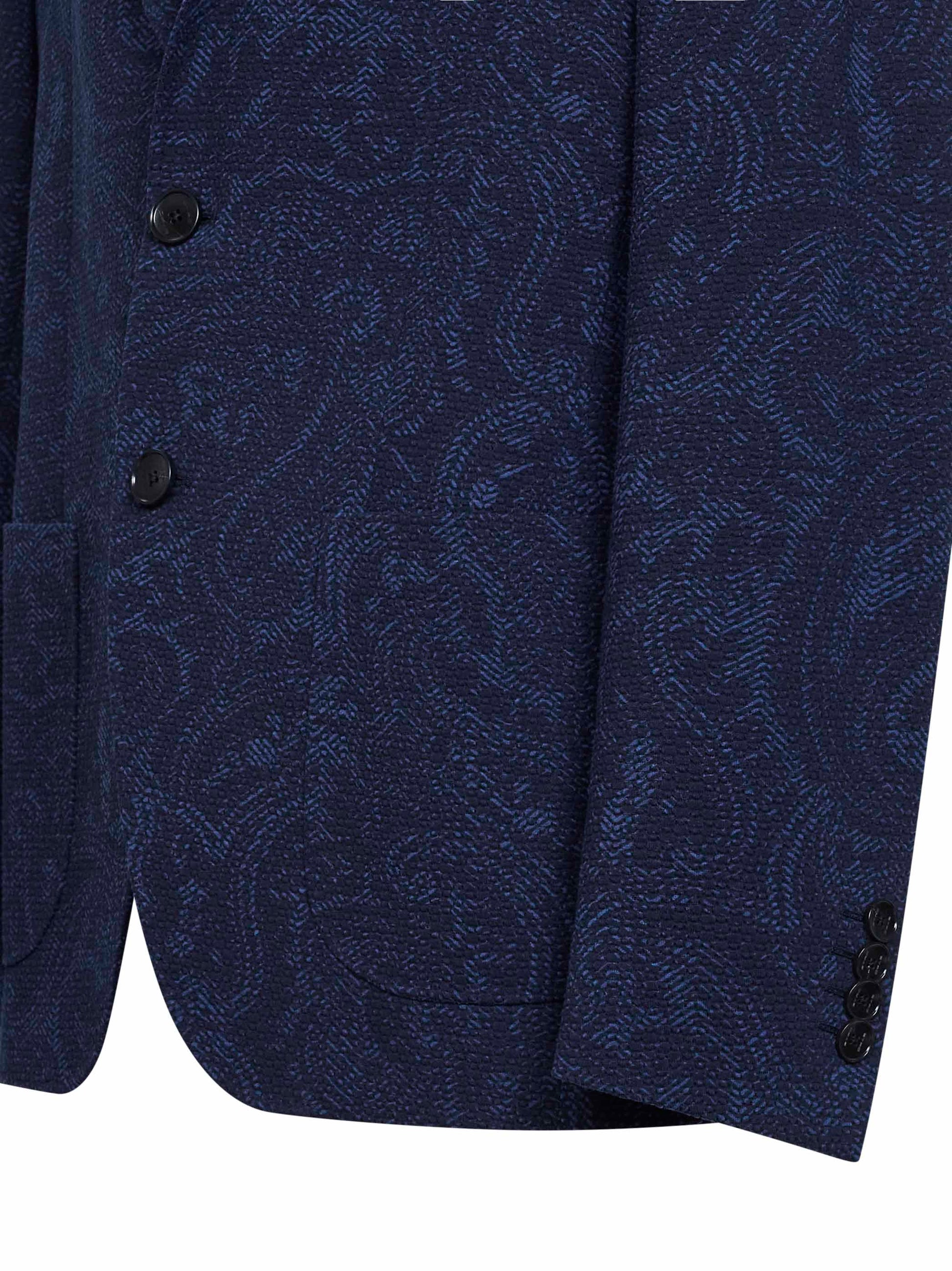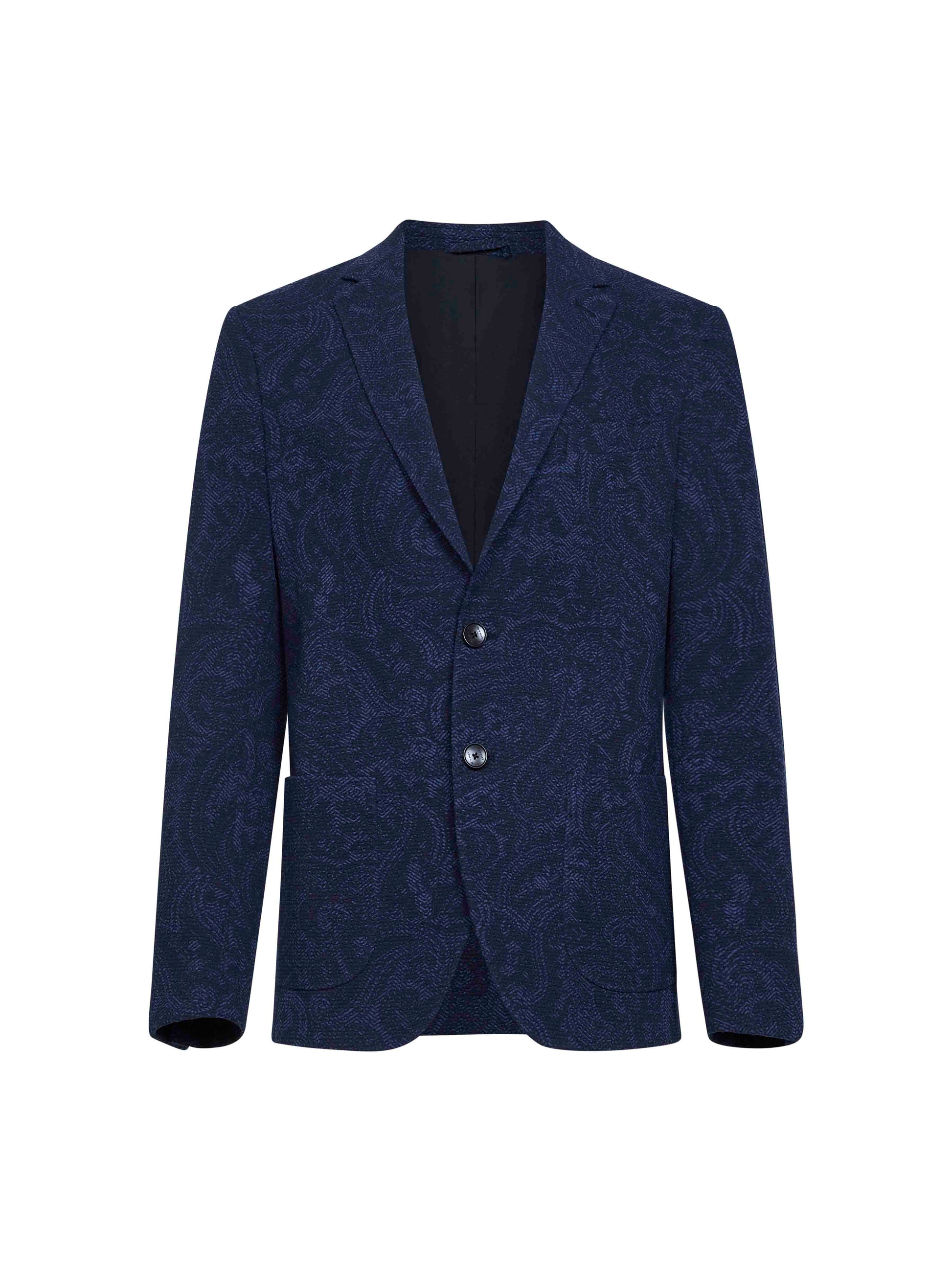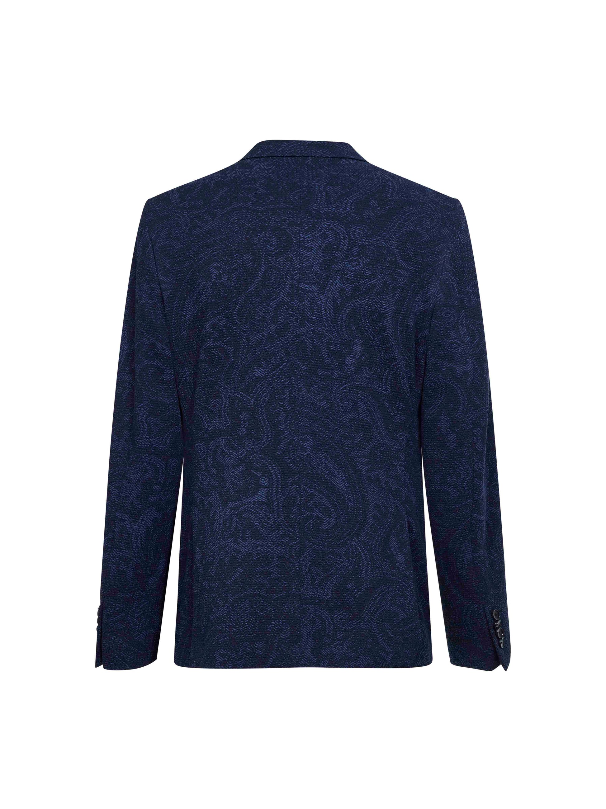 Blue Paisley-pattern seersucker jersey single-breasted jacket
