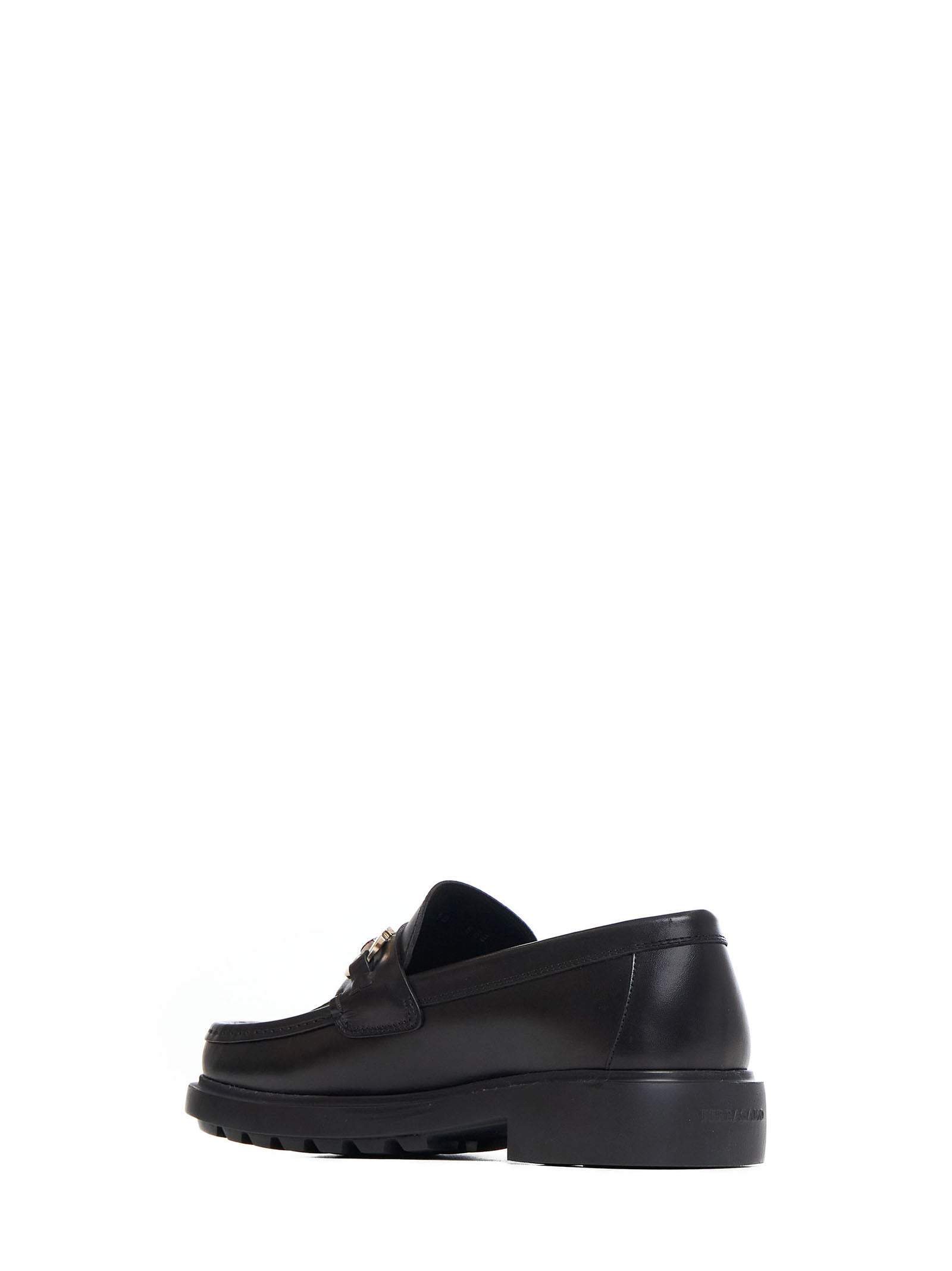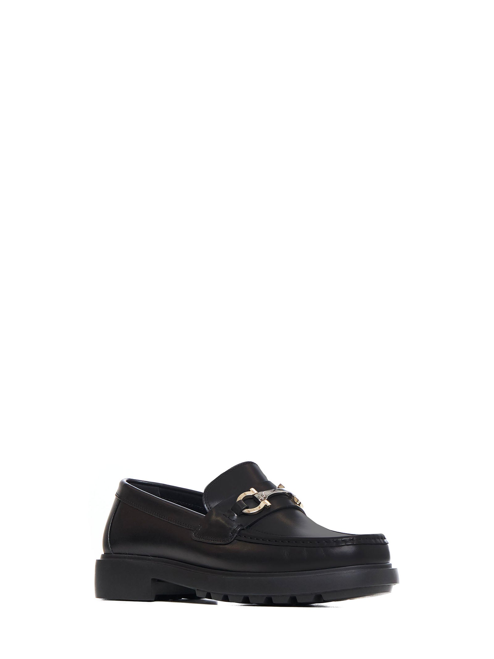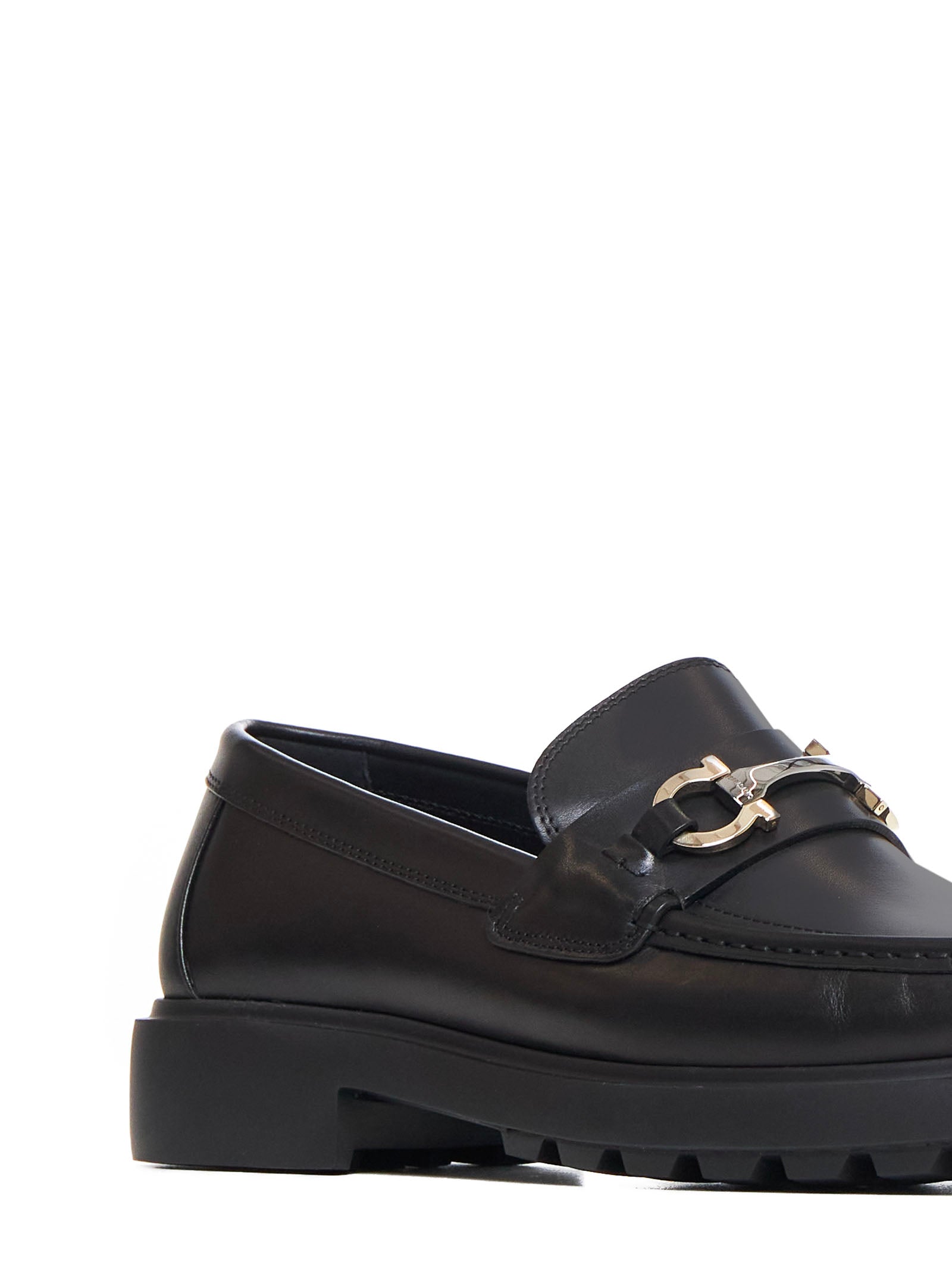 Black leather loafers with Gancini ornament