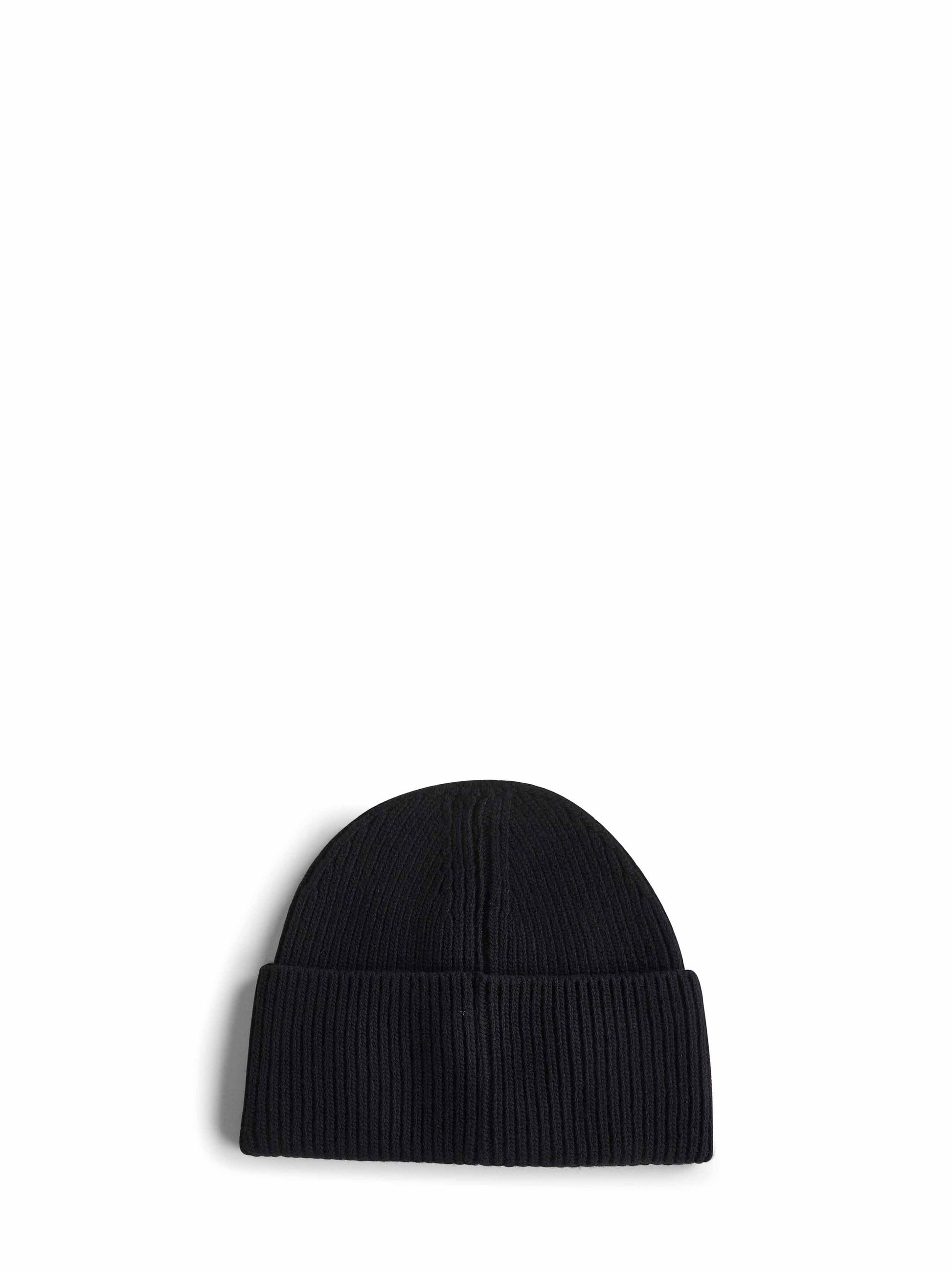Black wool knit logo patch beanie