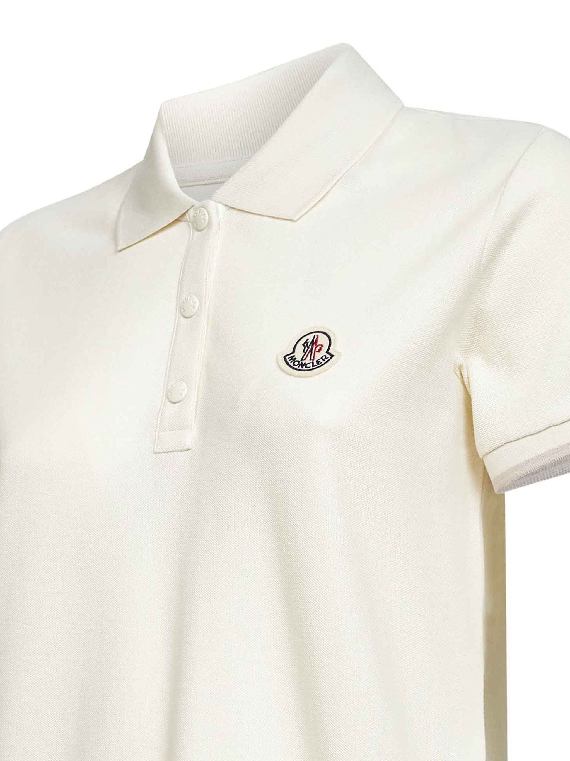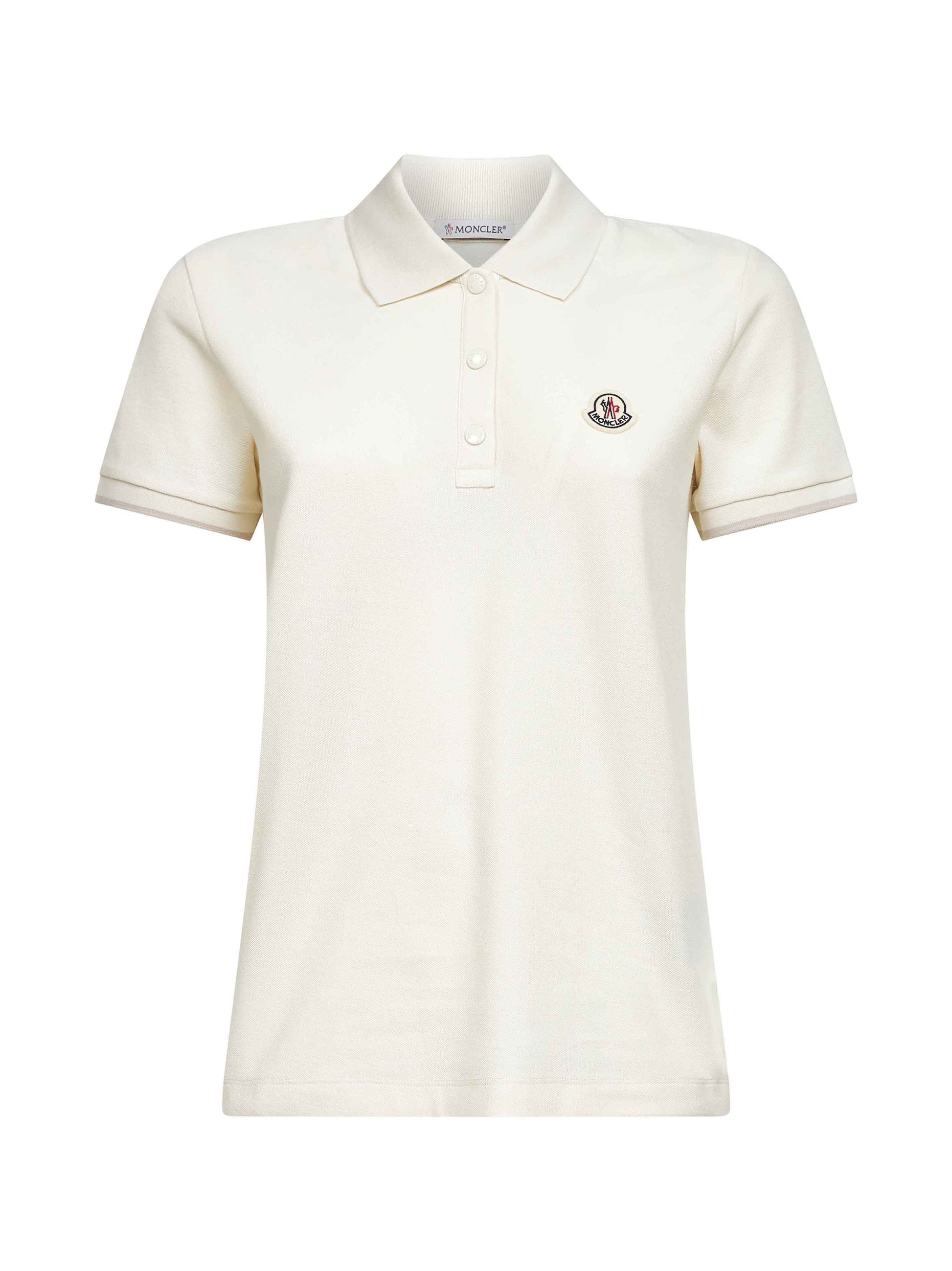 White cotton pique logo patch polo shirt