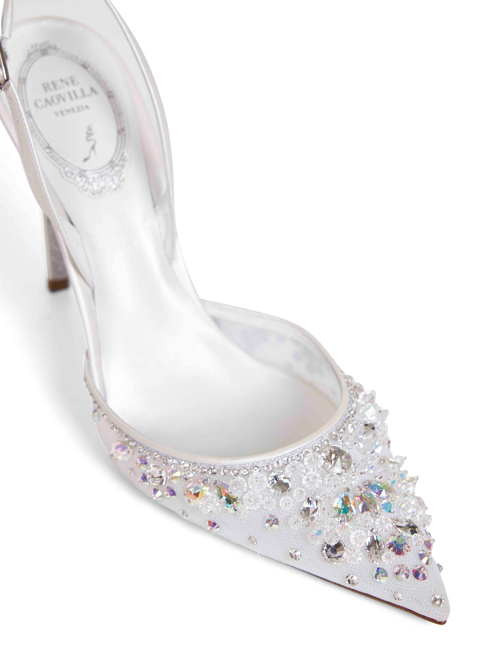 White crystal-embellished Cinderella 105 slingback pumps