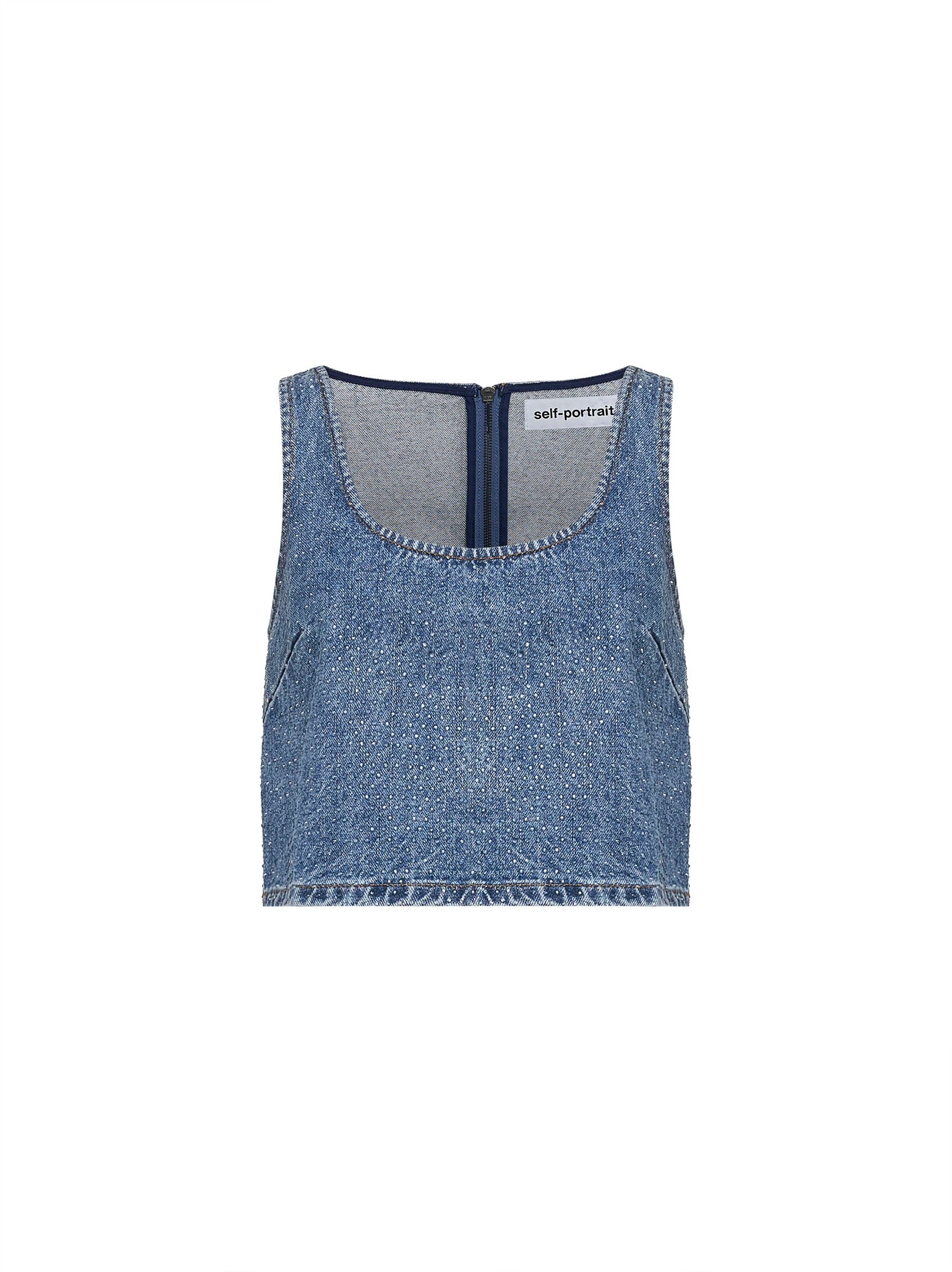 Blue rhinestone denim crop top