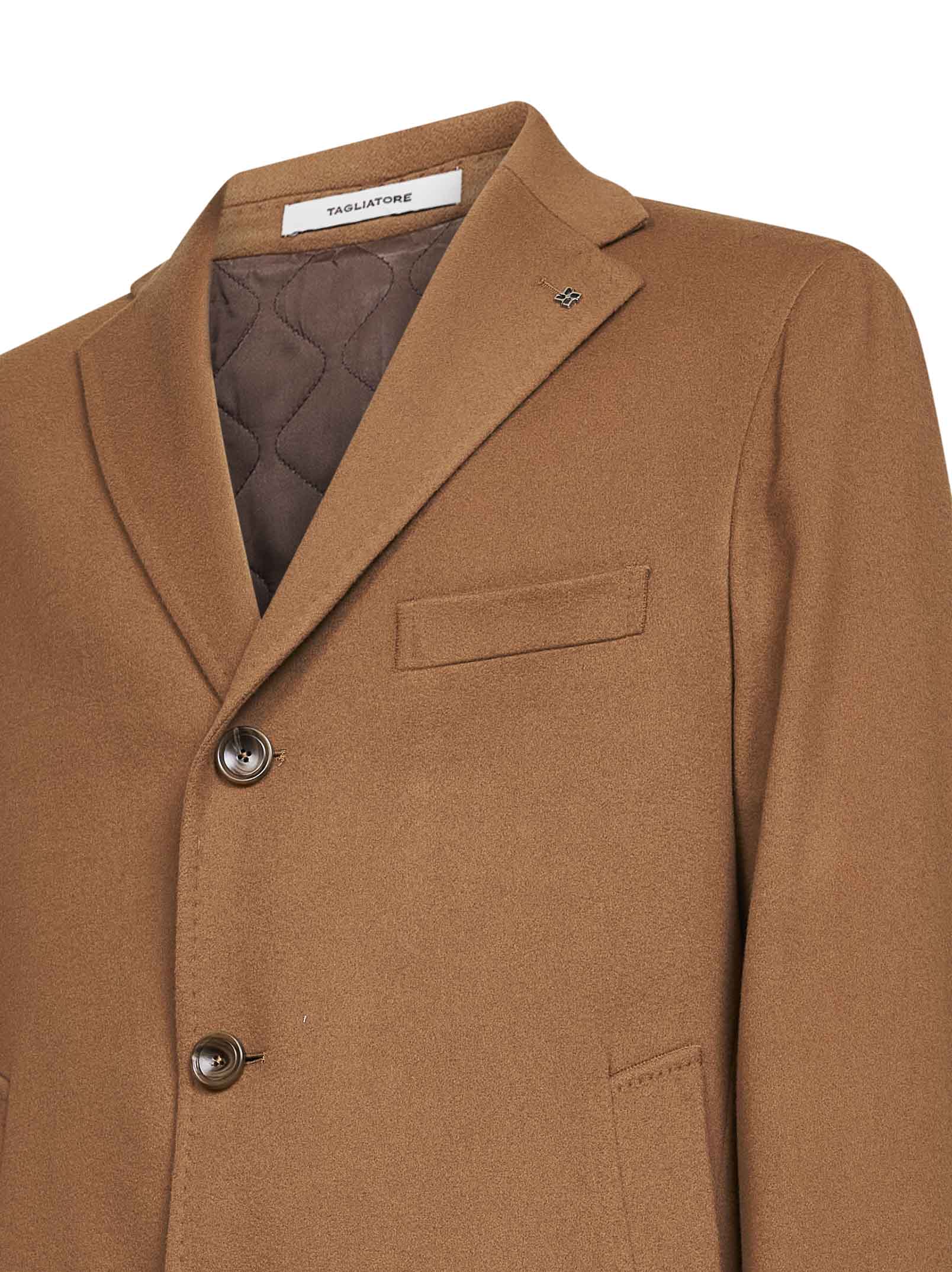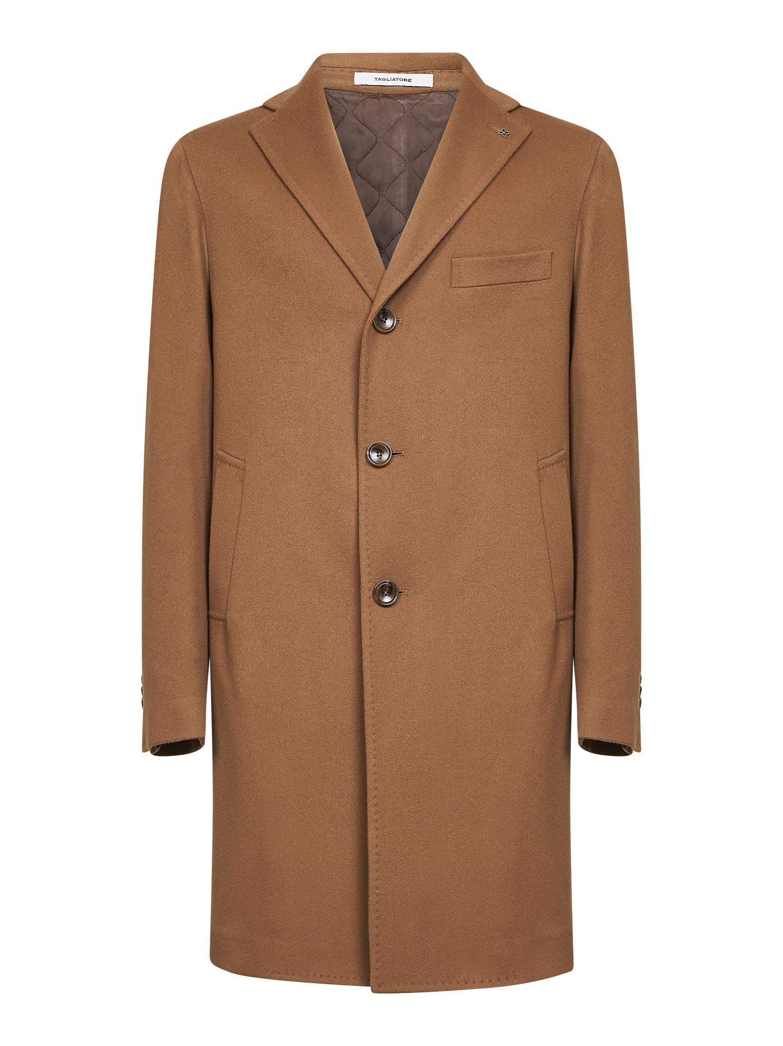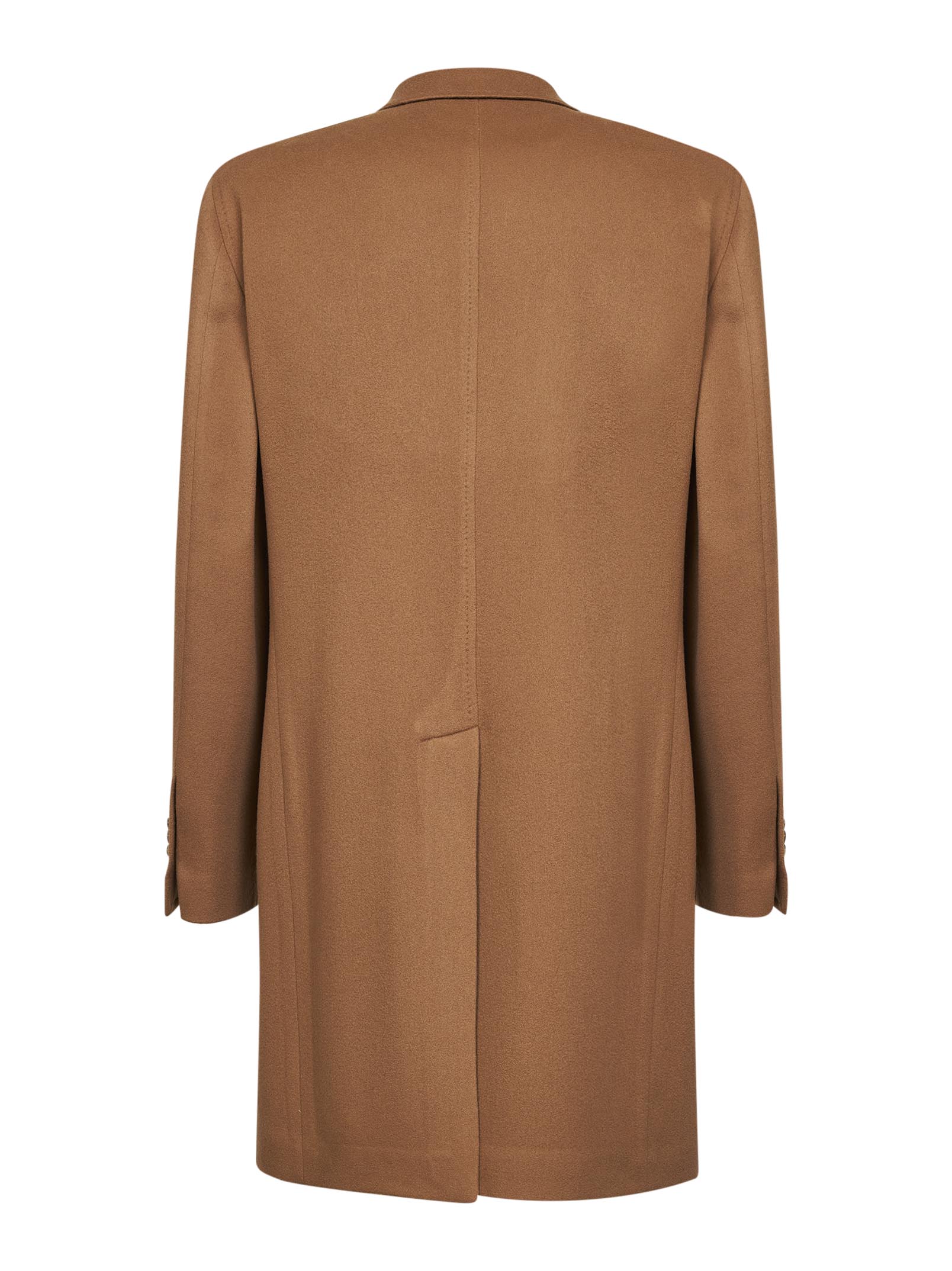 Camel virgin wool and cashmere single-breasted coat