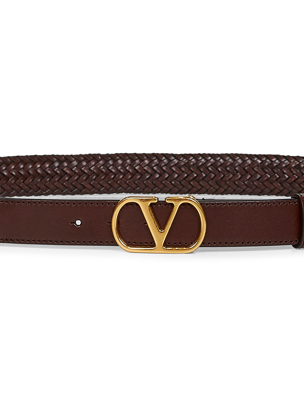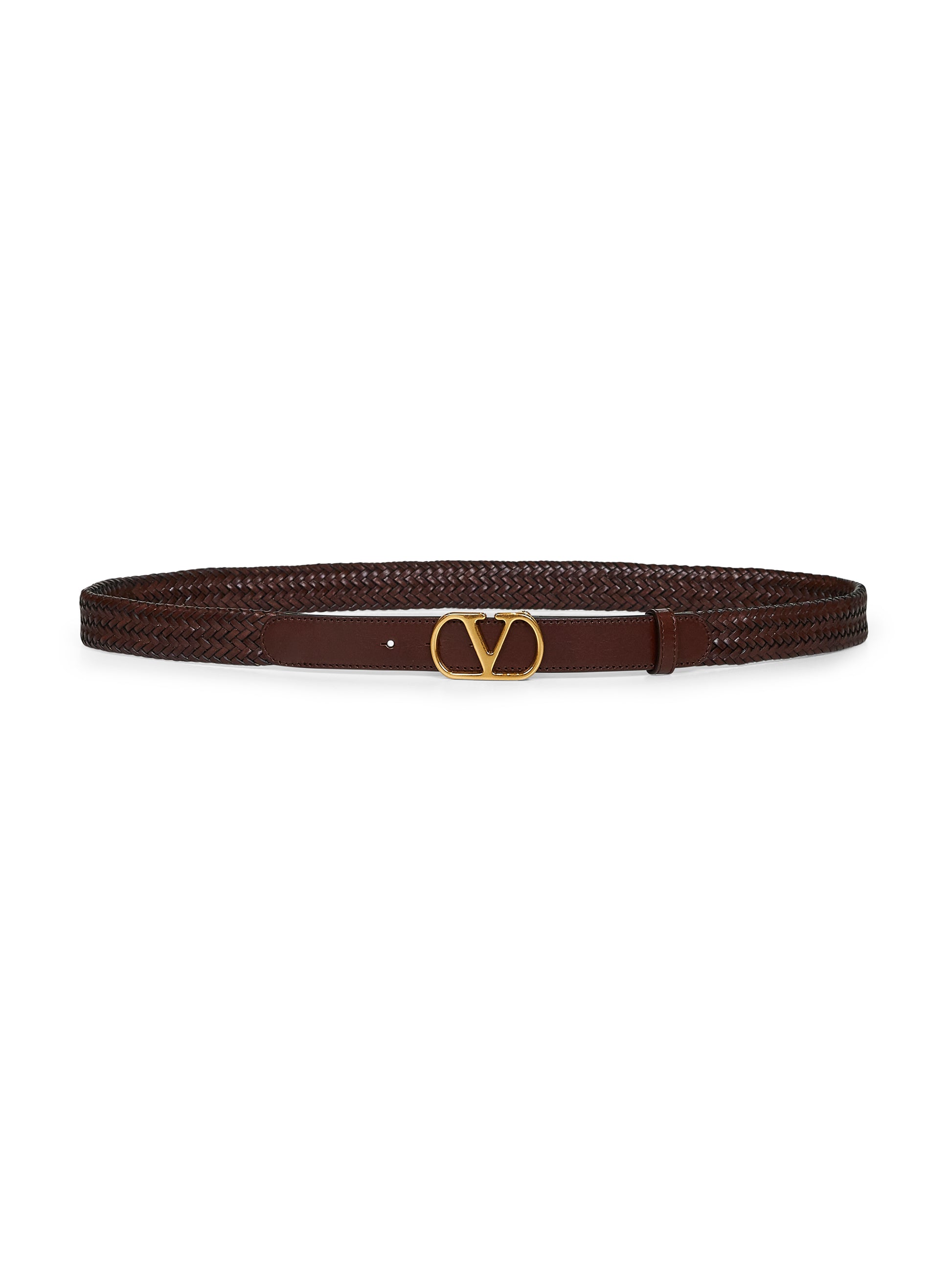 Brown woven leather VLogo Signature belt